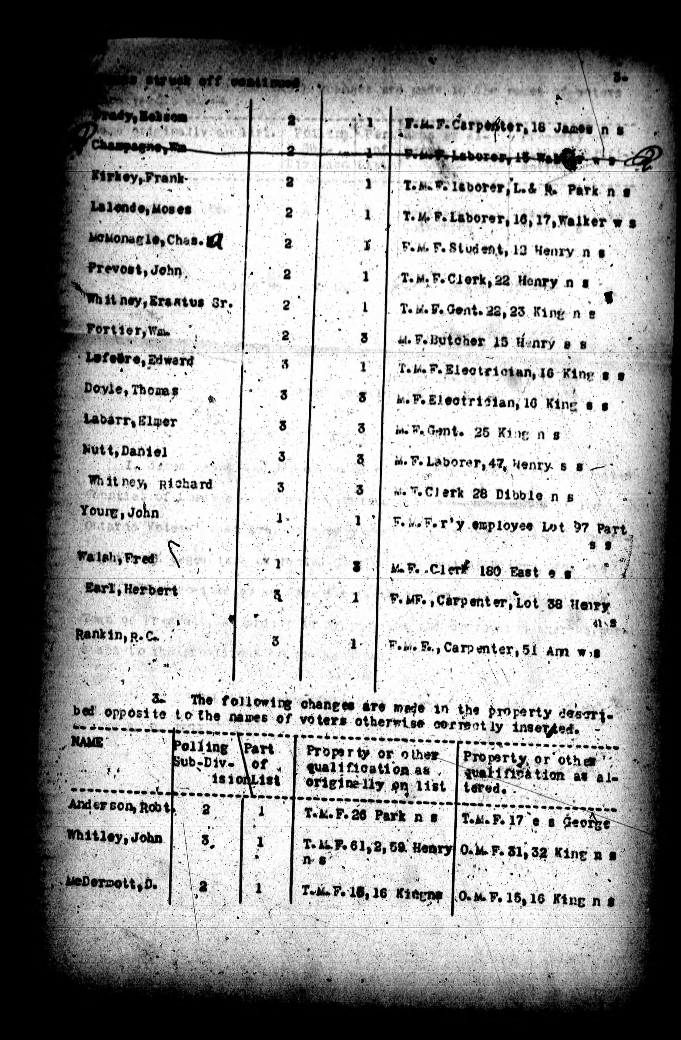 - Voters' list of the municipality of the town of Prescott, 1898.
