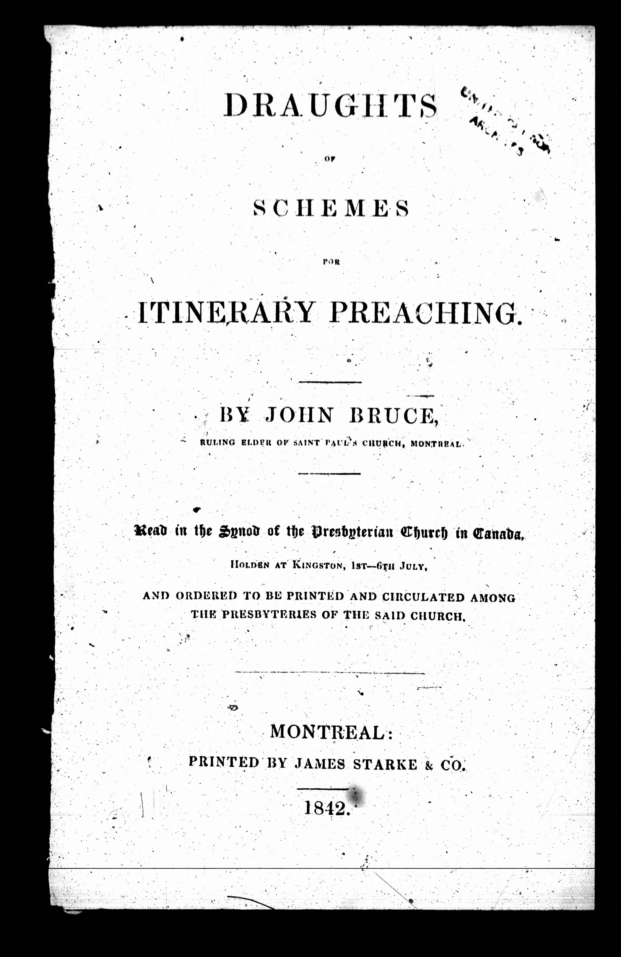 "Read in the Synod of the Presbyterian Church in Canada. holden at Kingston, 1st-6th July, and ordered to be printed and circulated among the presbyteries of the said church."