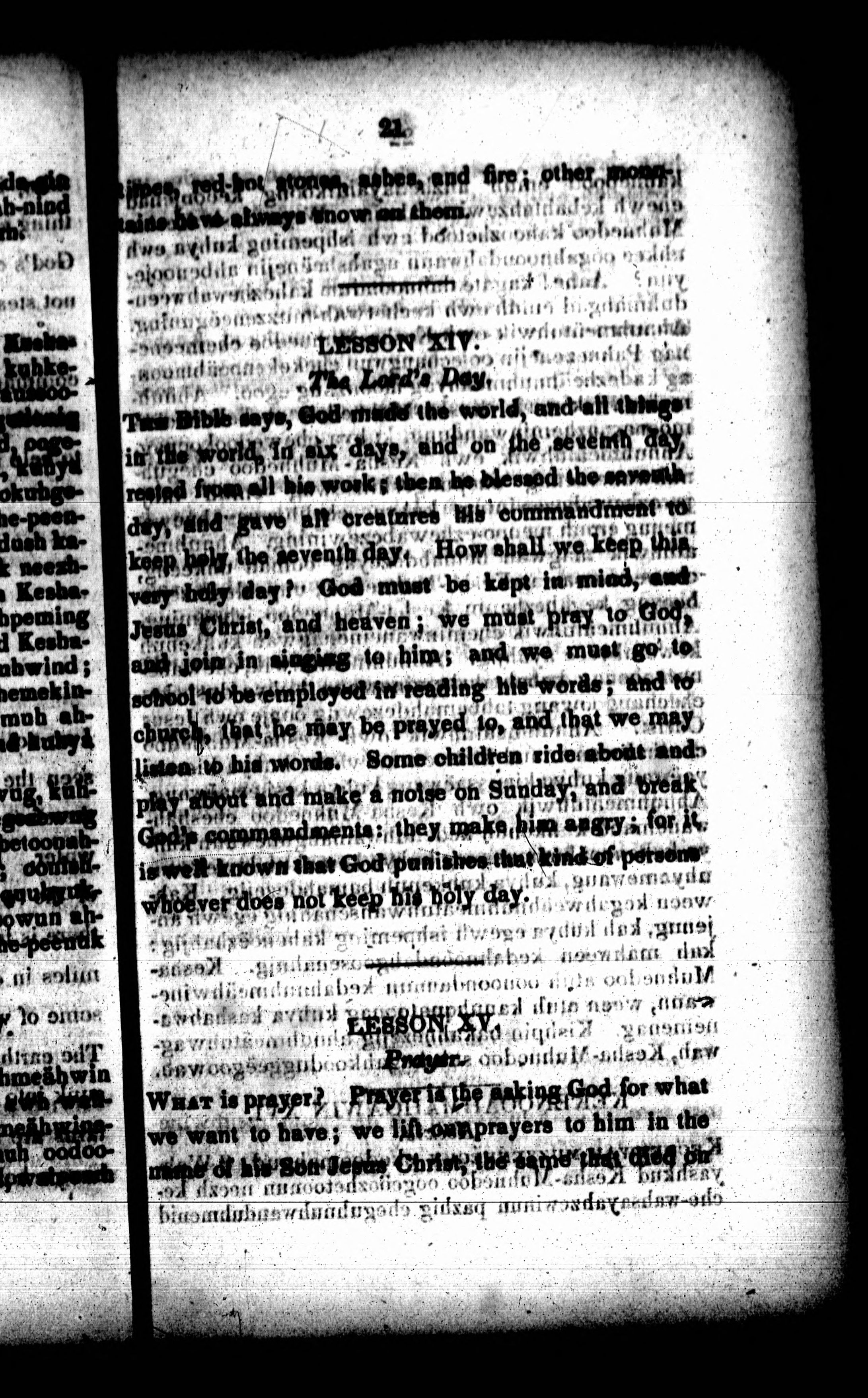 Spelling and reading book, in Ojibwa and English = Kekenooä hmahgawinun cheöonje aginduhming kuhya spellewing, Oojibwamoong kuhya shahguhnaushemoong.