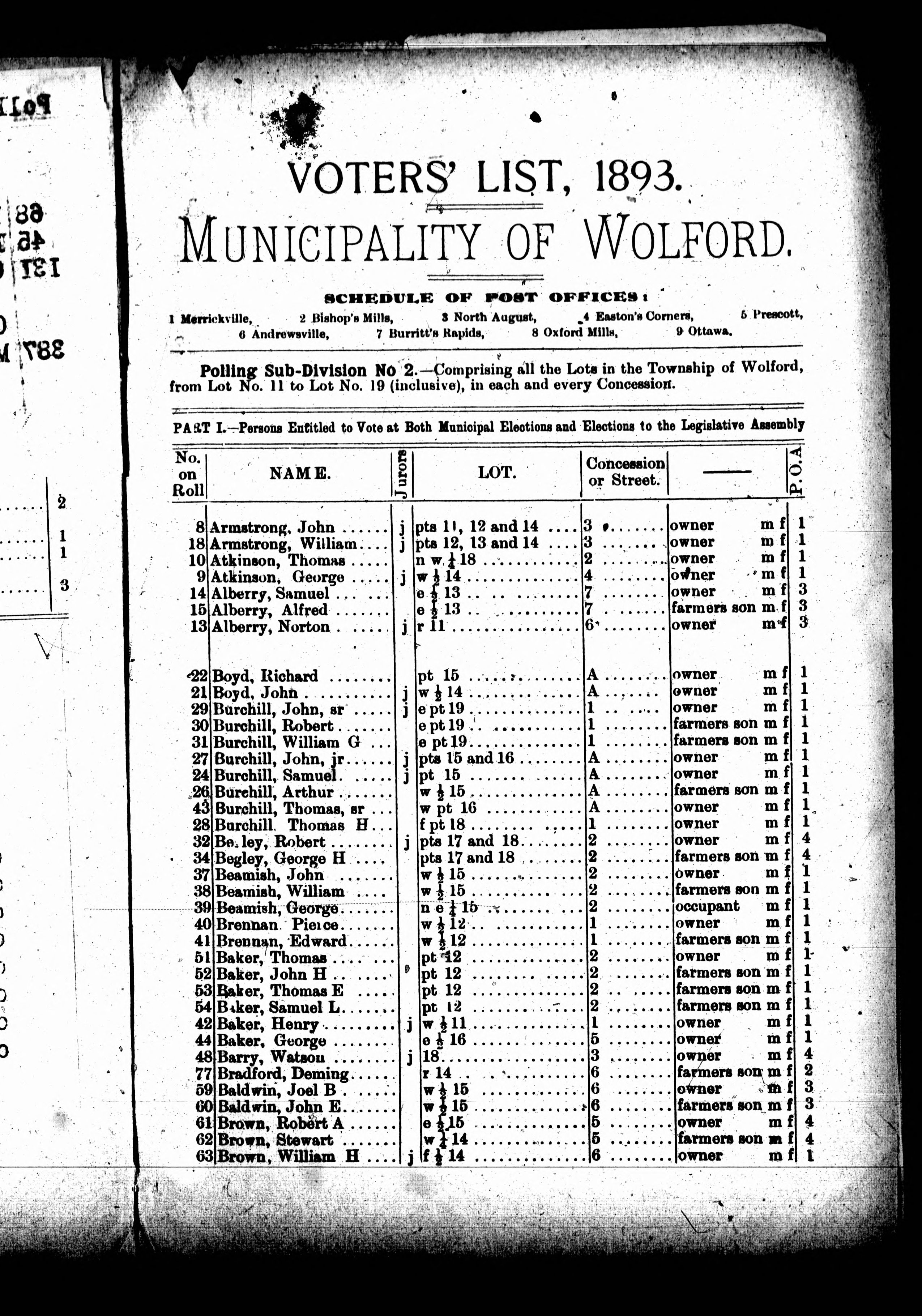 - Voters' list for the municipality of the township of Wolford for the year 1893.