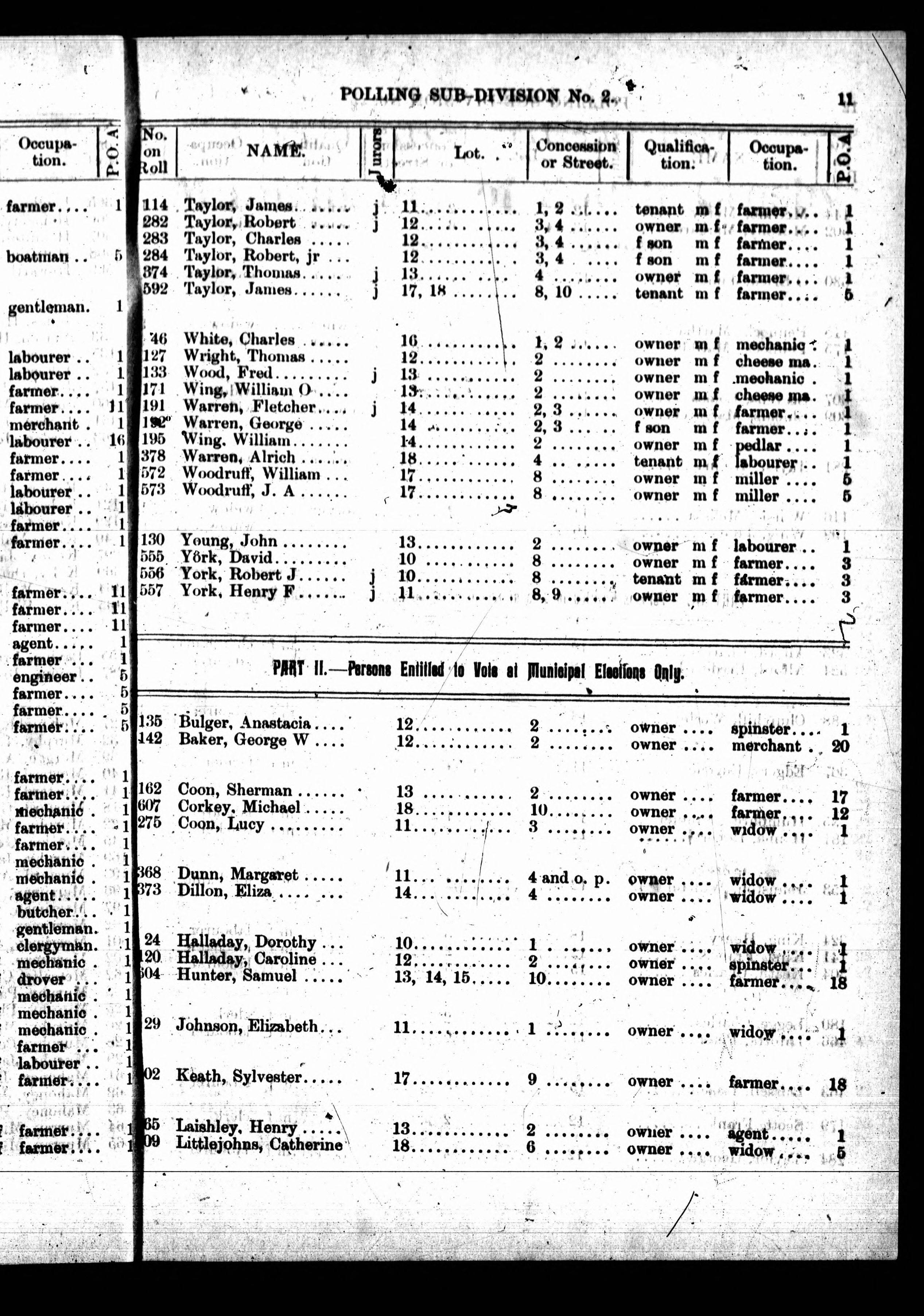 Voters' list for the municipality of the township of South Crosby, for the year 1898.