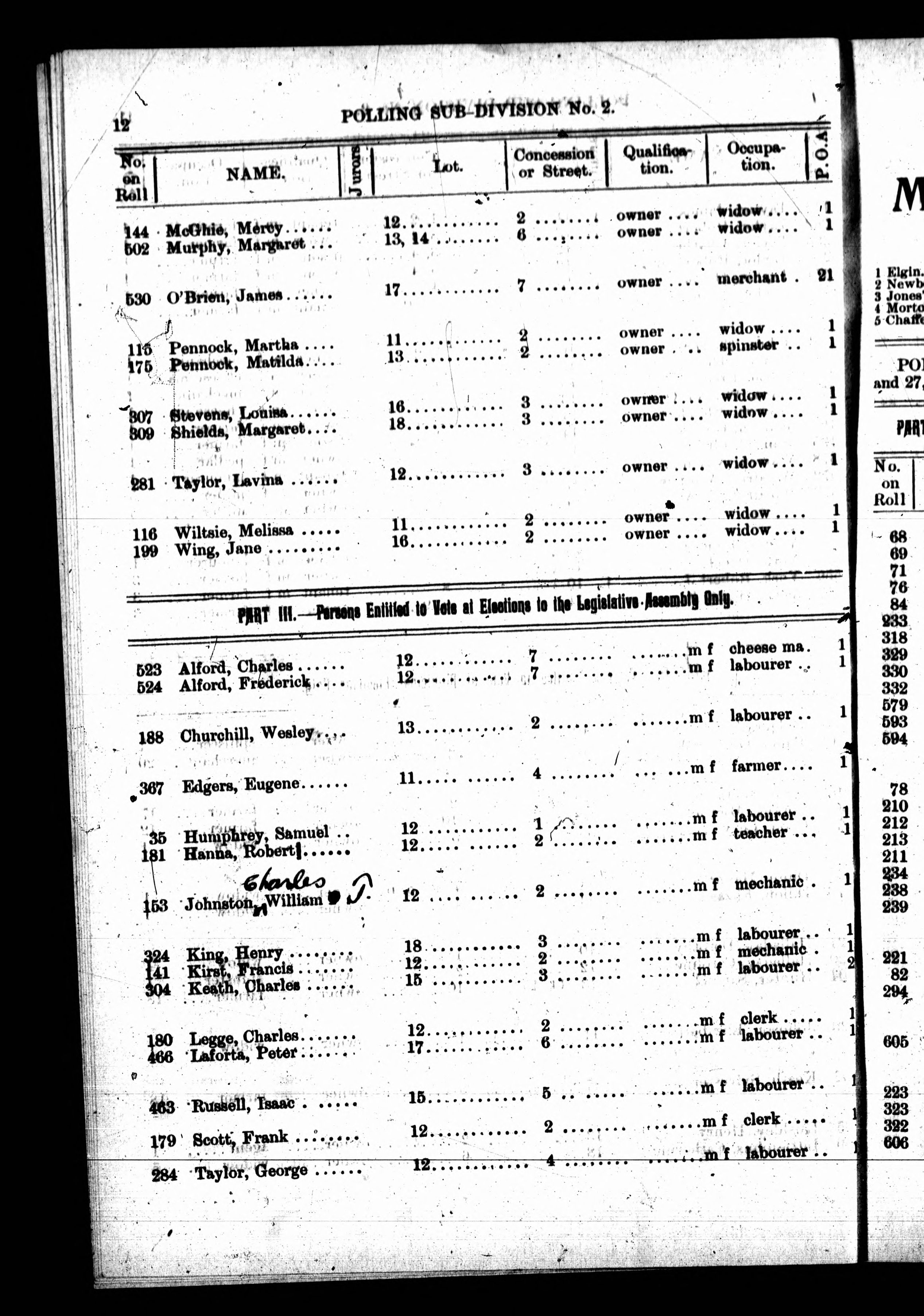 Voters' list for the municipality of the township of South Crosby, for the year 1898.