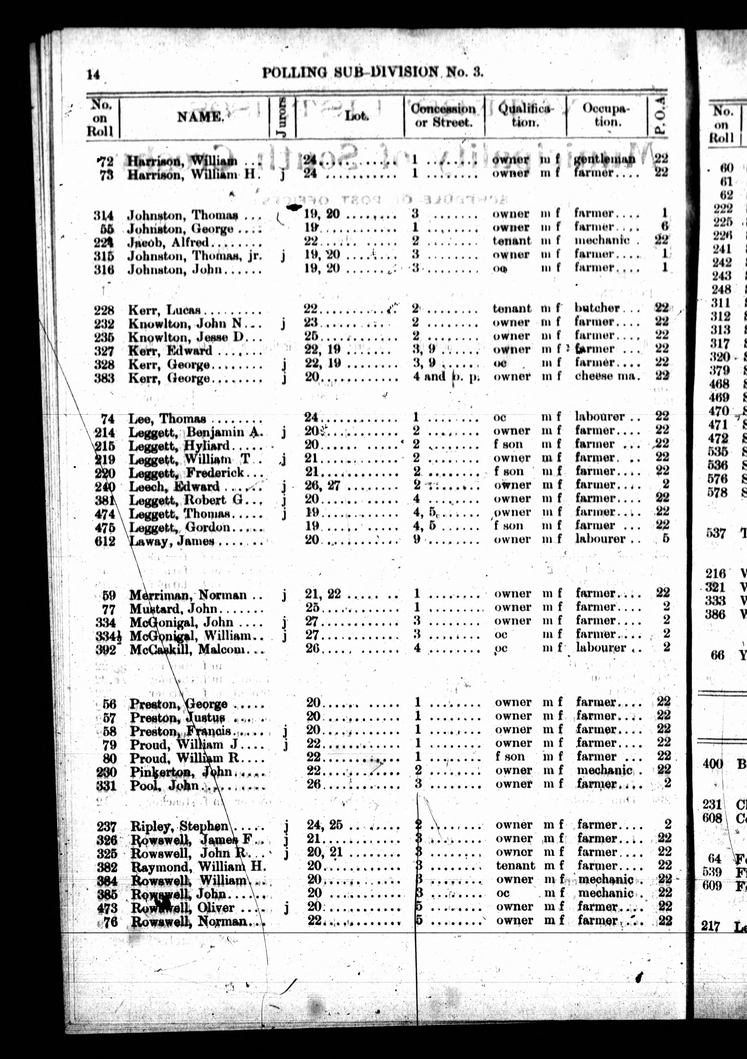 Voters' list for the municipality of the township of South Crosby, for the year 1898.
