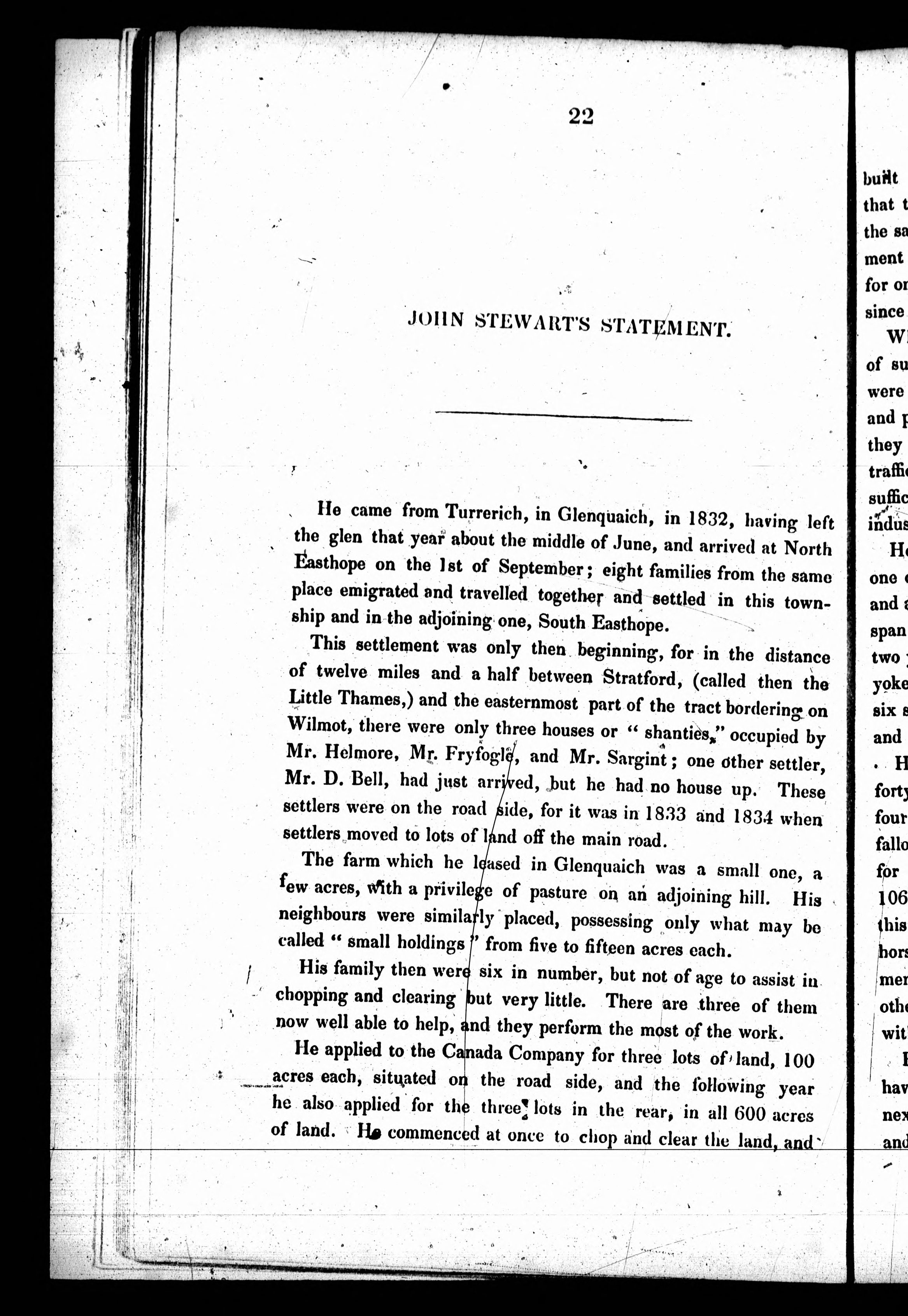 - [Statements from settlers on the Canada Company land in the Huron District].