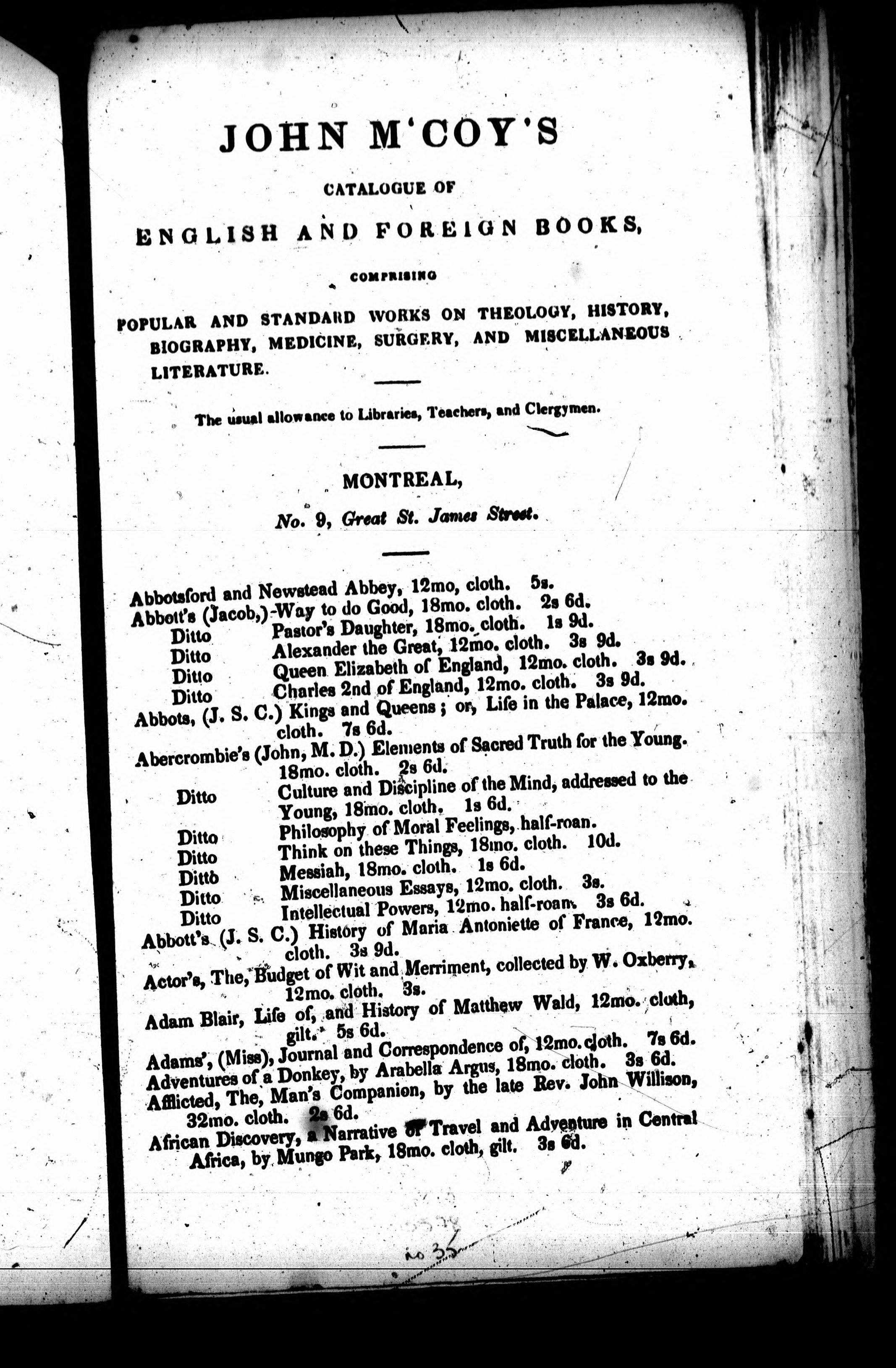 John M'Coy's catalogue of English and foreign books : comprising popular and standard works on theology, history, biography, medicine, surgery, and miscellaneous literature. - Adresse bibliographique