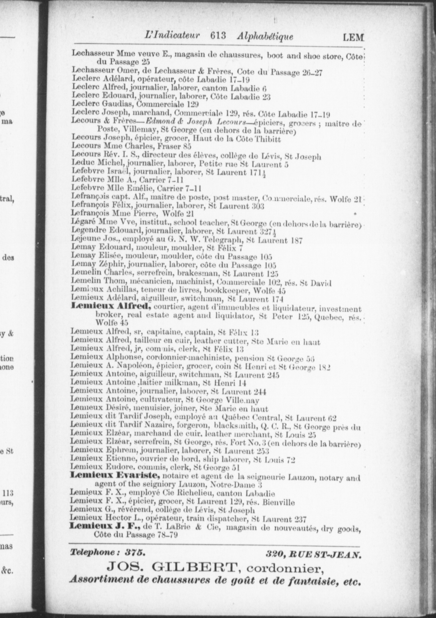 L'Indicateur de Québec & Lévis = : L'Indicateur de Québec & Lévis = The Quebec & Levis directory : 10ème Édition (1898-99)