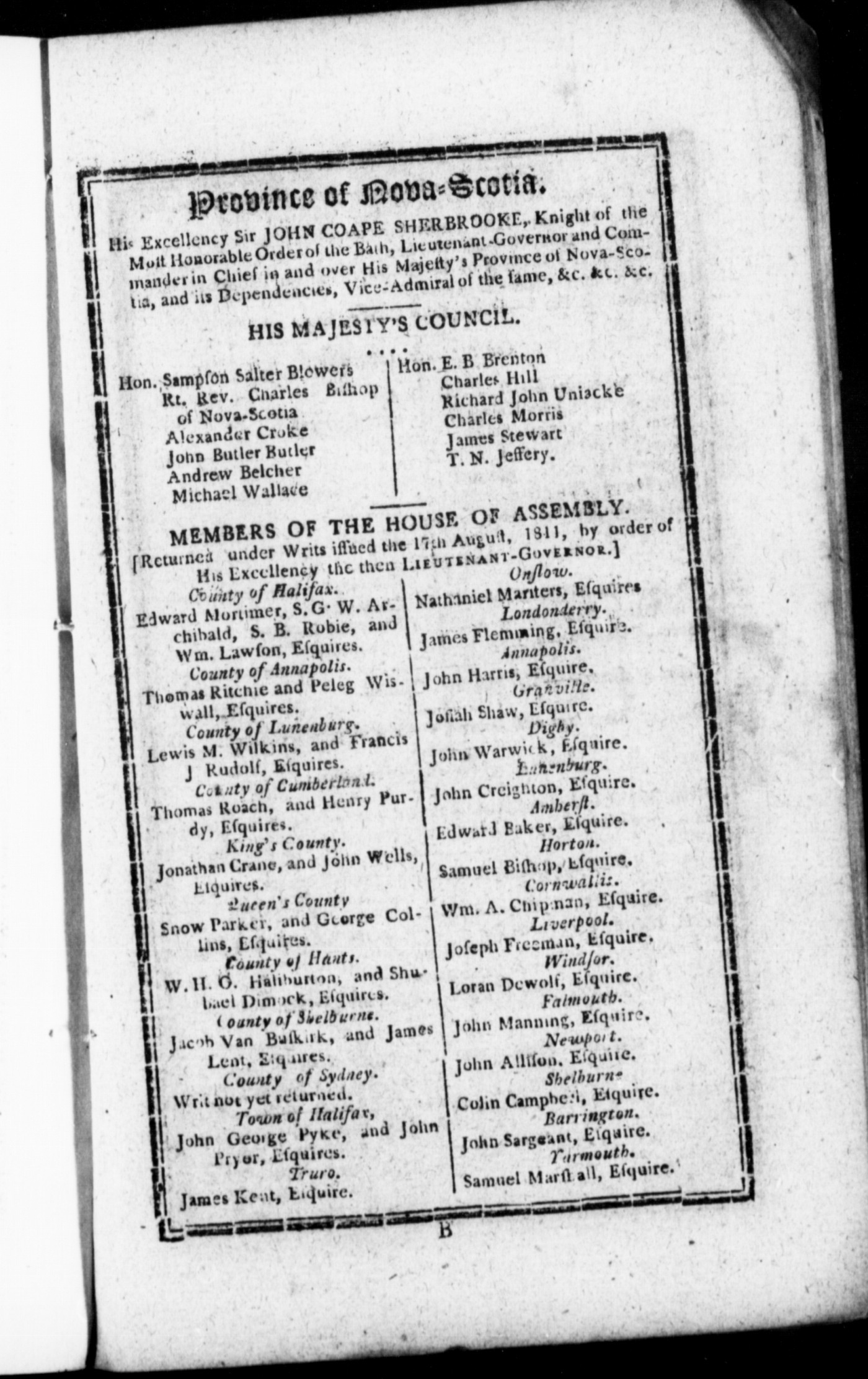 Halifax [N.S.] : Printed and sold by John Howe & Son, at their Office, [1811?]