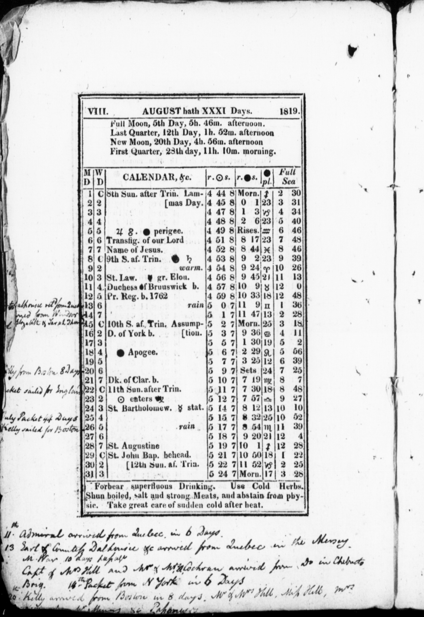 An Almanack For the Year of Our Lord 1819 : 1819