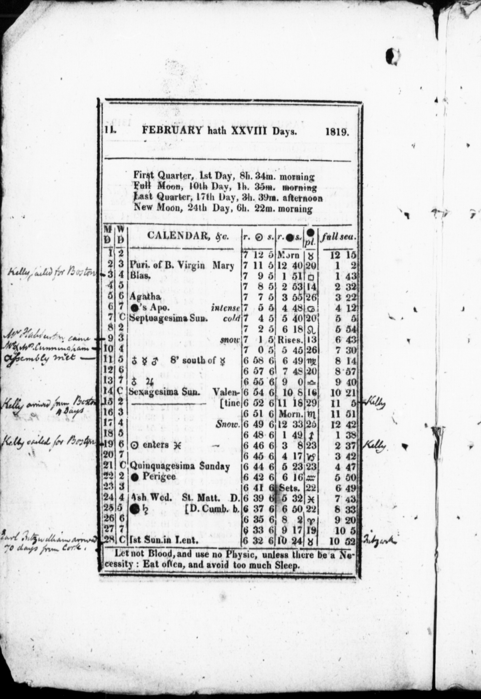 An Almanack for the year of our Lord ... / : An Almanack For the Year of Our Lord 1819 : 1819