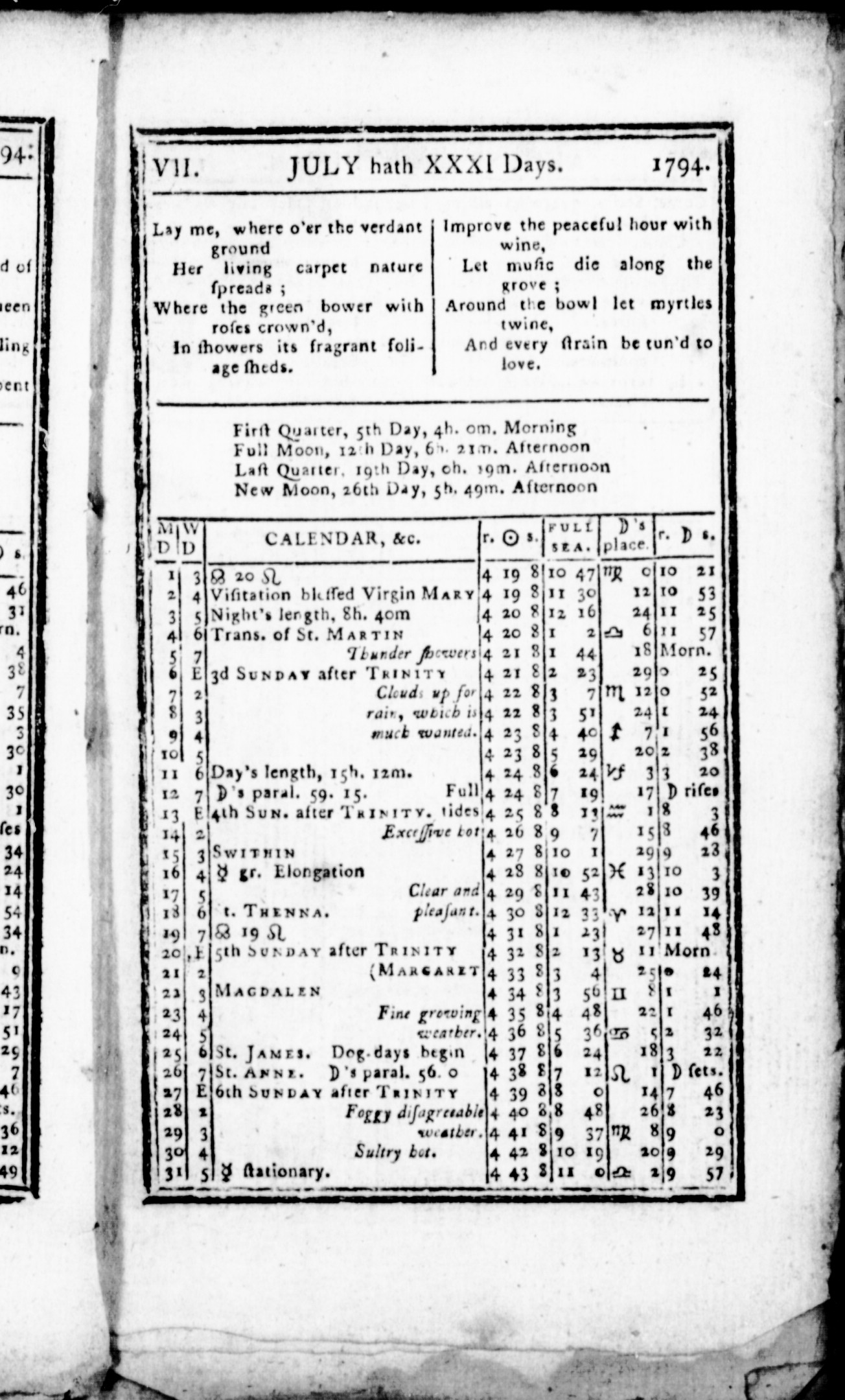 An Almanack for the year of our Lord ... / : An Almanack for the Year of our Lord 1794 : 1794