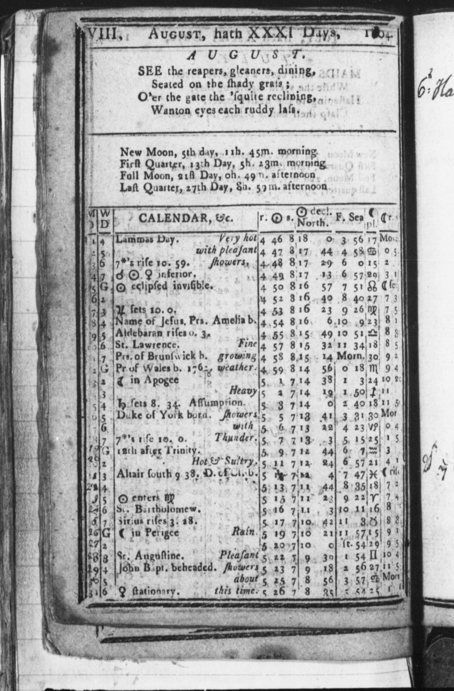An Almanack for the year of our Lord ... / : An Almanack for the Year of Our Lord 1804 : 1804