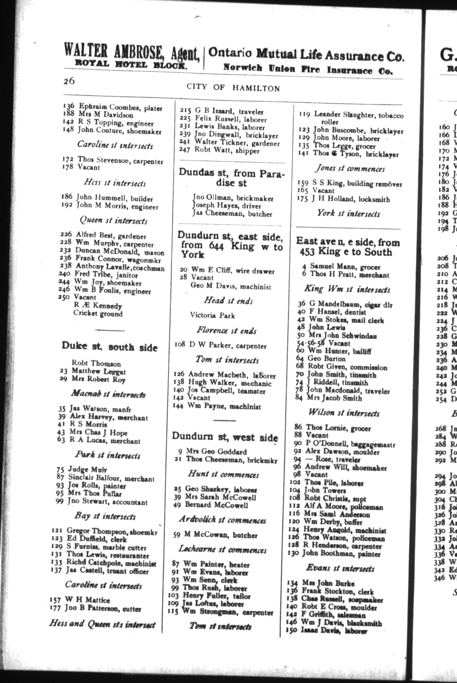City of Hamilton ... annual street, alphabetical, general, miscellaneous and classified business directory for the year ... : City of Hamilton nineteenth annual street, alphabetical, general, miscellaneous and classified business directory for the year March 1892, March 1893 : Nineteenth (1892-1893)