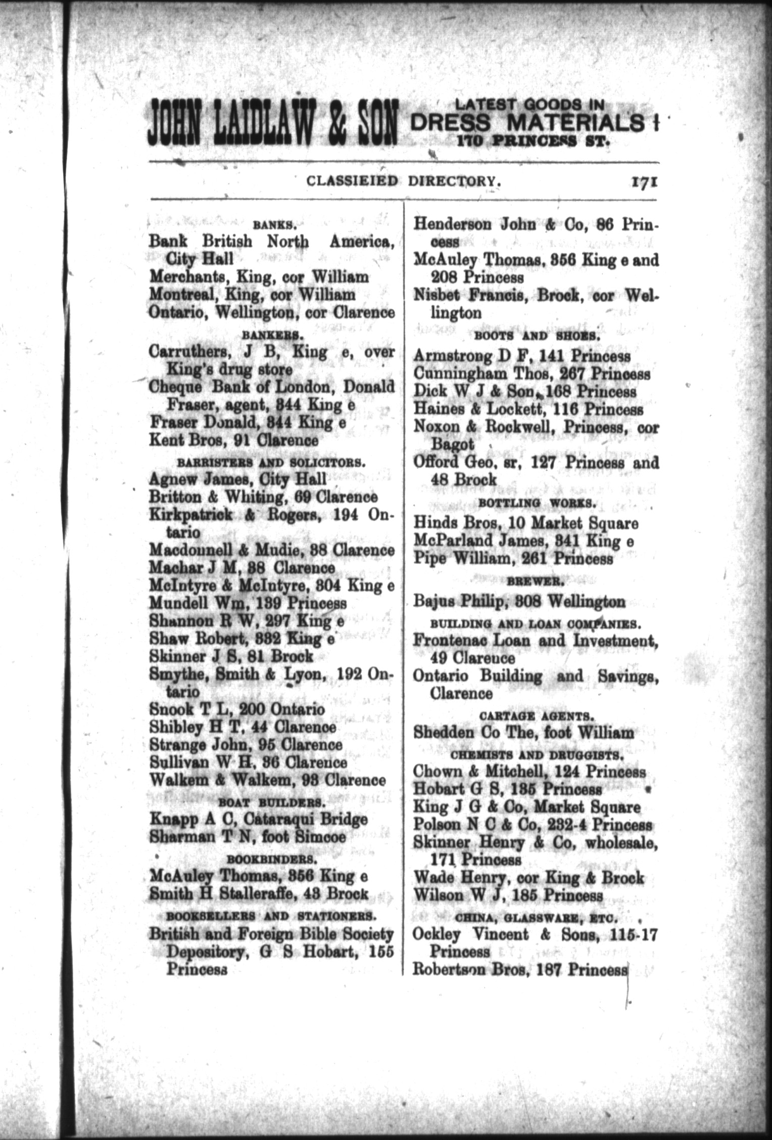 City of Kingston street, alphabetical, general, miscellaneous and classified business directory for the year 1890-1891 : Fifth Edition (1890-1891)