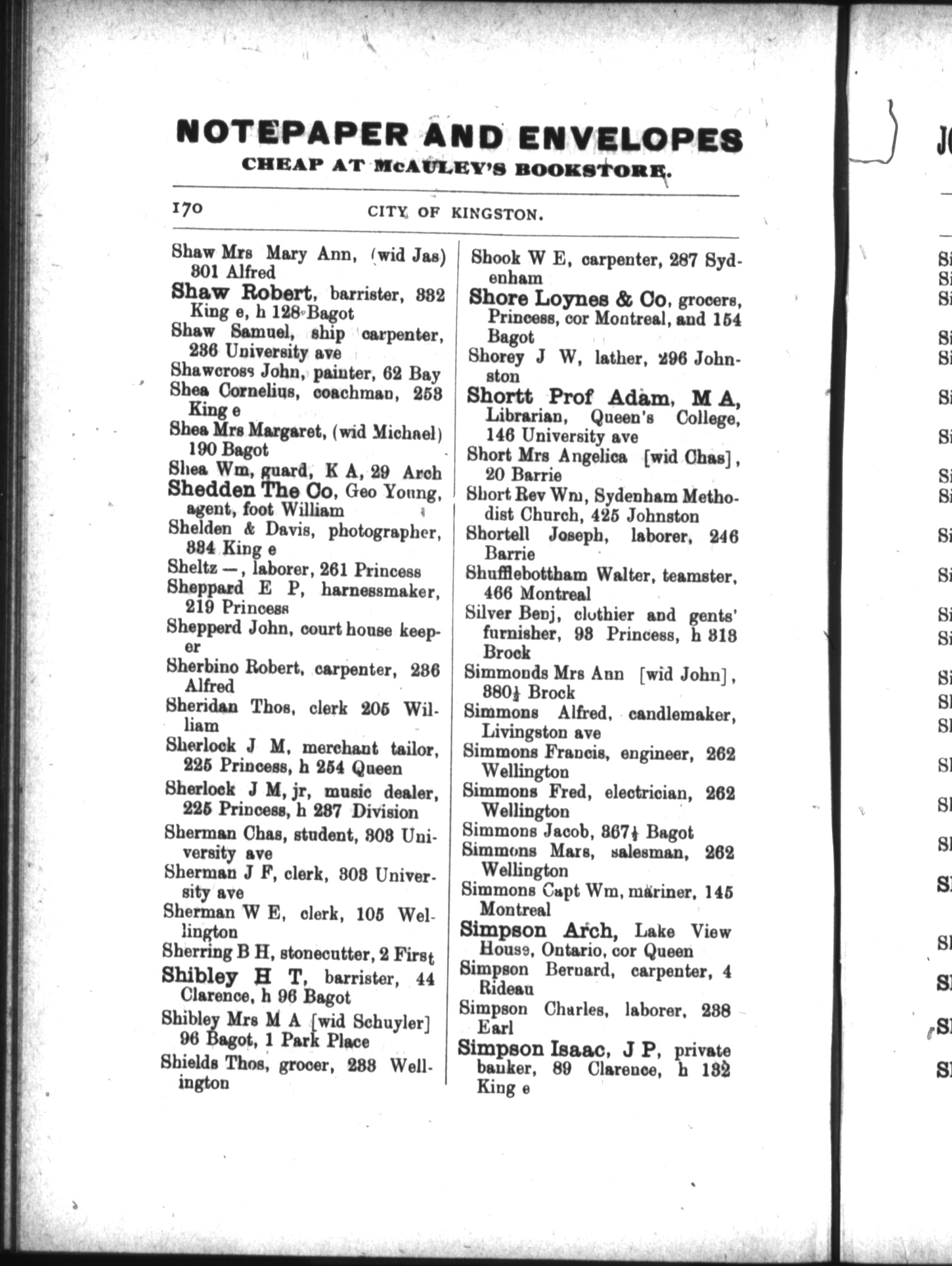 City of Kingston street, alphabetical, general, miscellaneous and classified business directory for the year 1891-1892 : Sixth Edition (1891-1892)