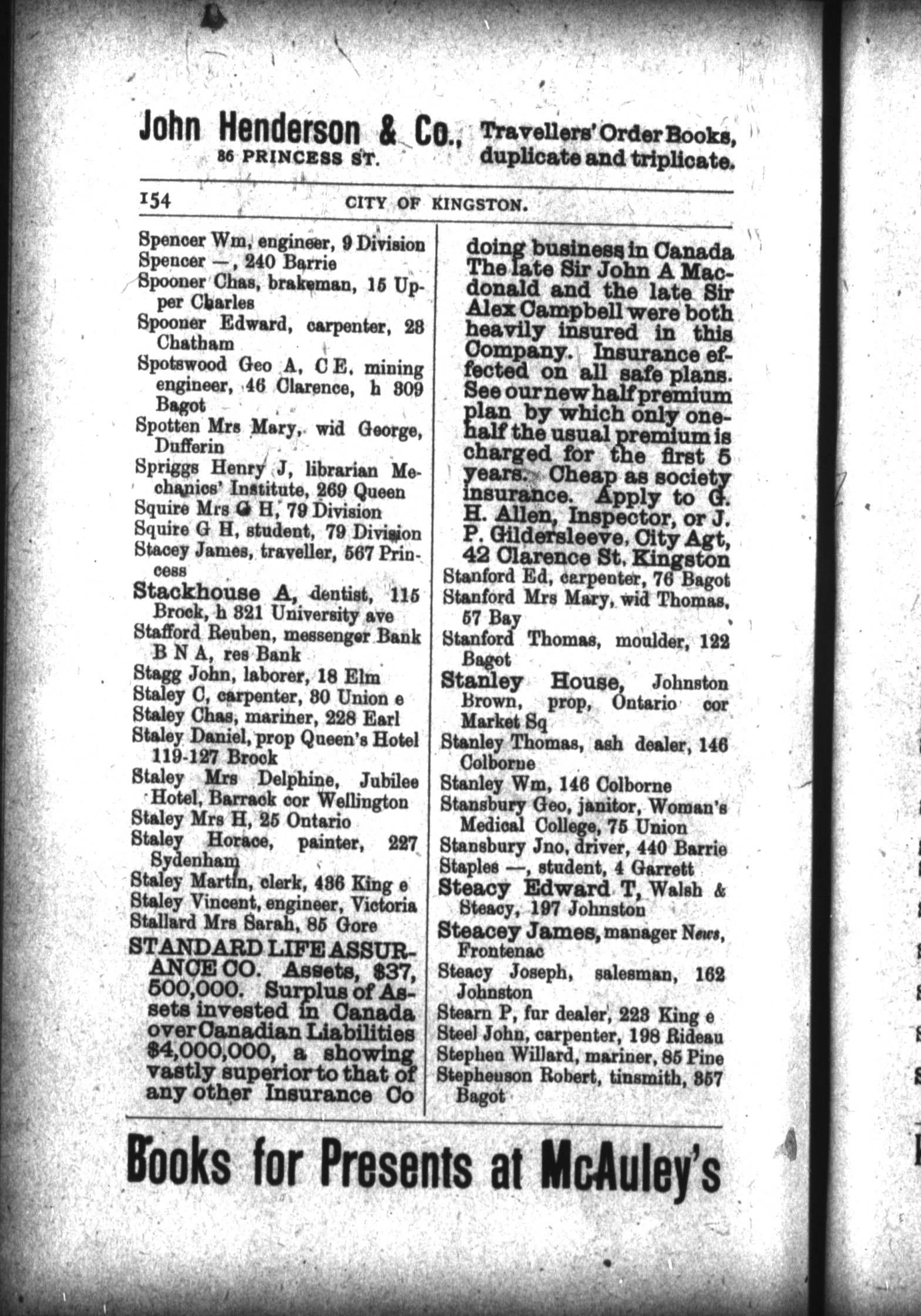 City of Kingston street, alphabetical, general, miscellaneous and classified business directory from July 1892 to July 1893 : Seventh Edition (1892-1893)