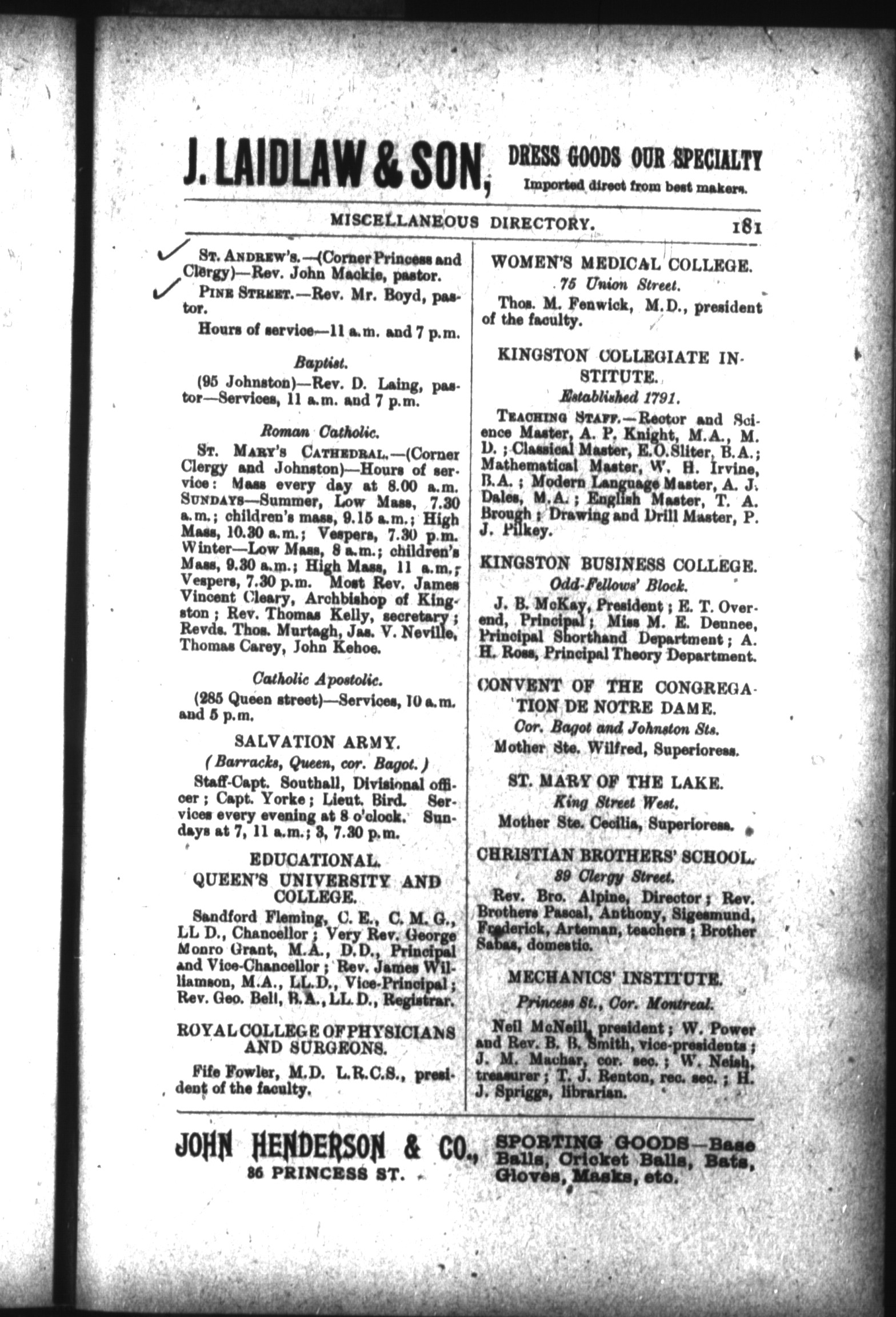 City of Kingston street, alphabetical, general, miscellaneous and classified business directory from July 1892 to July 1893 : Seventh Edition (1892-1893)