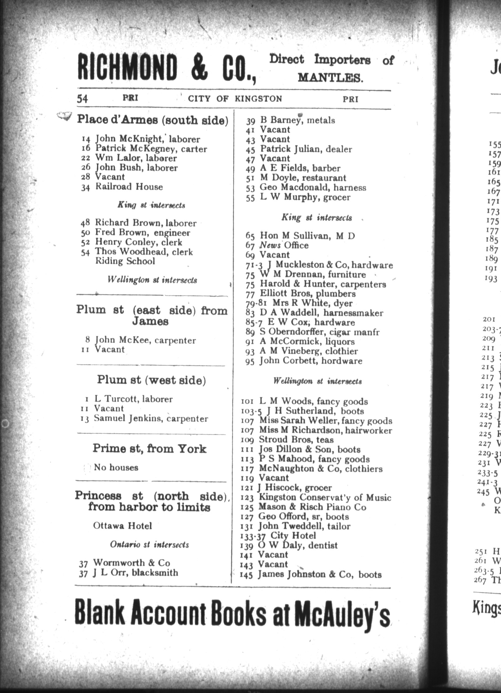 - City of Kingston street, alphabetical, general, miscellaneous and classified business directory from July 1893 to July 1894 : Eighth Edition (1893-1894)