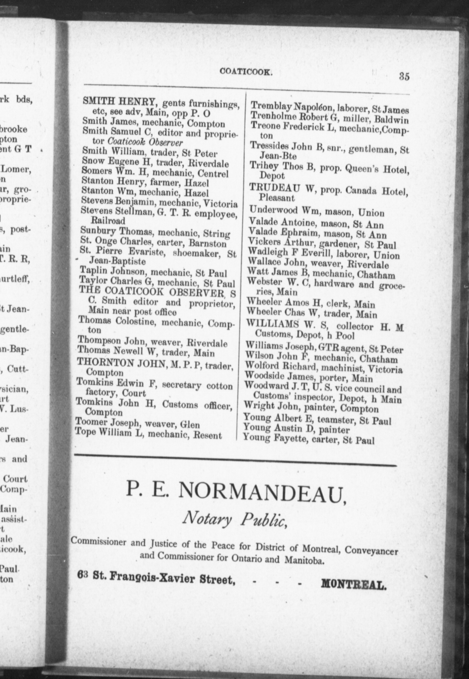 Montreal : Normandeau & Co., Compilers and Publishers, 1881; 187 images, 184 with full-text search