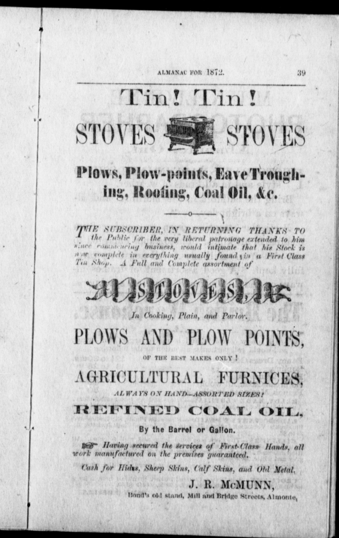 - [Almonte, Ont.?] : publisher not identified, 1872