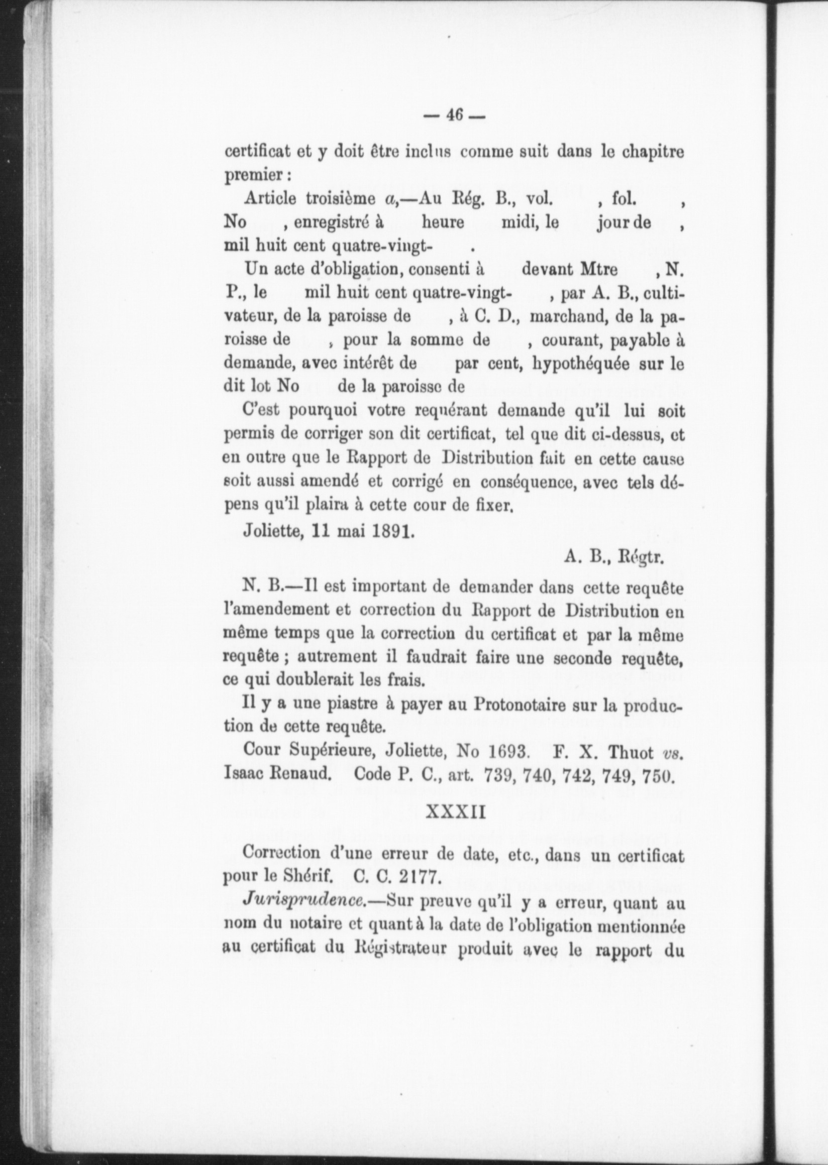 [Montréal?] : Association des régistrateurs de la province de Québec, [1893?]; 73 images avec recherche en texte intégral