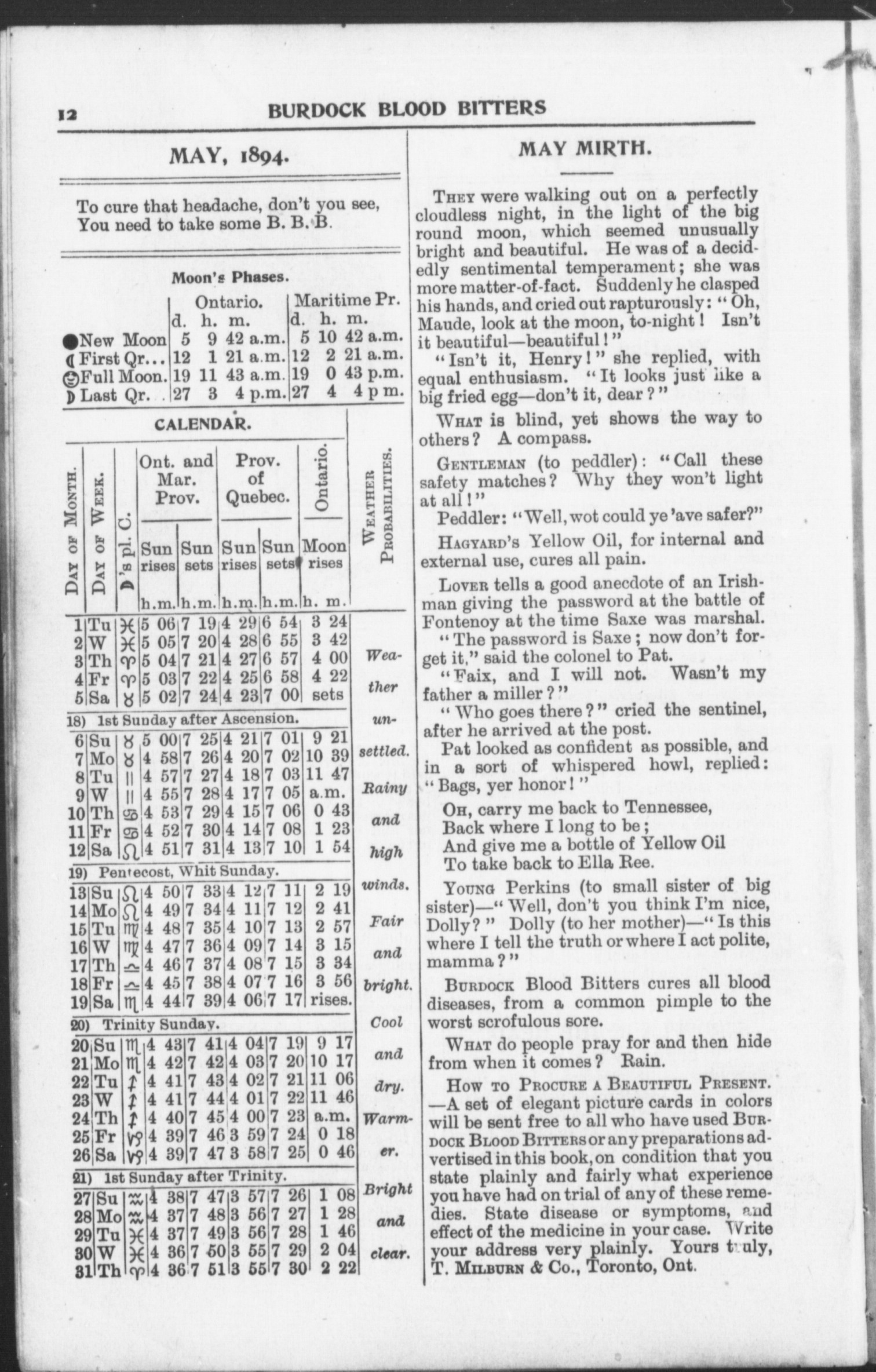 Burdock blood bitters almanac & key to health : Burdock blood bitters almanac & key to health : 1894