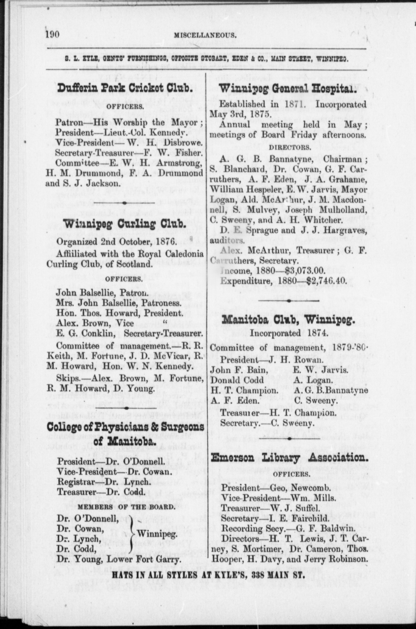 - Henderson's directory of the city of Winnipeg and incorporated towns of Manitoba ... for the year 1880 : 1880