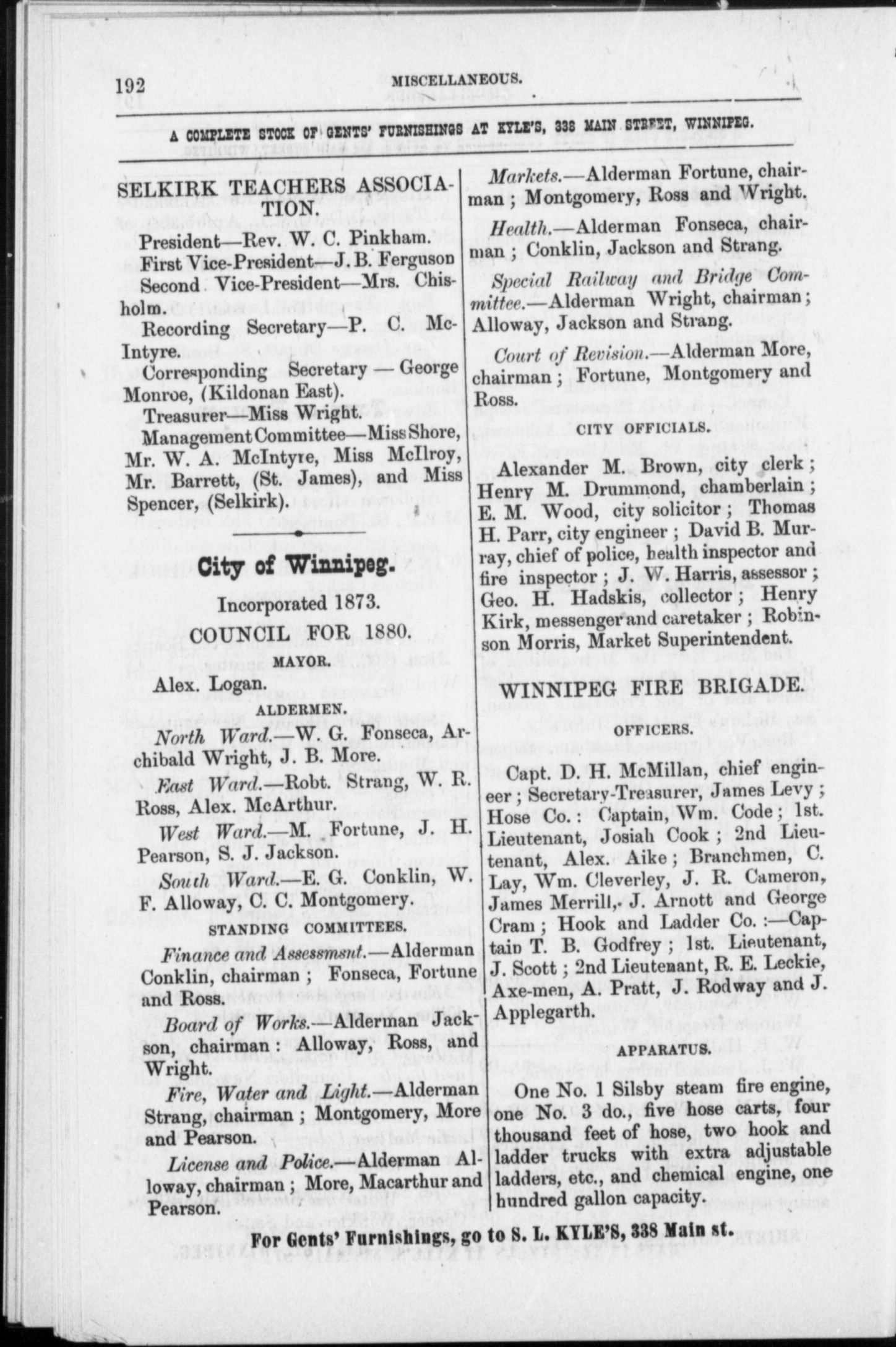- Henderson's directory of the city of Winnipeg and incorporated towns of Manitoba ... for the year 1880 : 1880