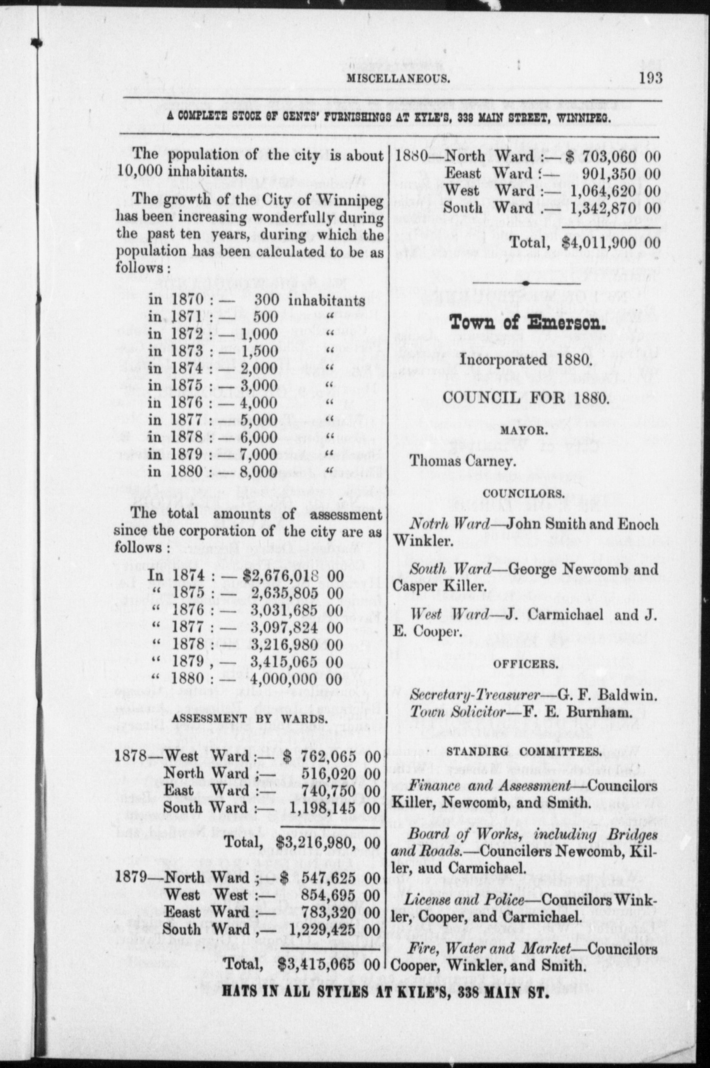 - Henderson's directory of the city of Winnipeg and incorporated towns of Manitoba ... for the year 1880 : 1880