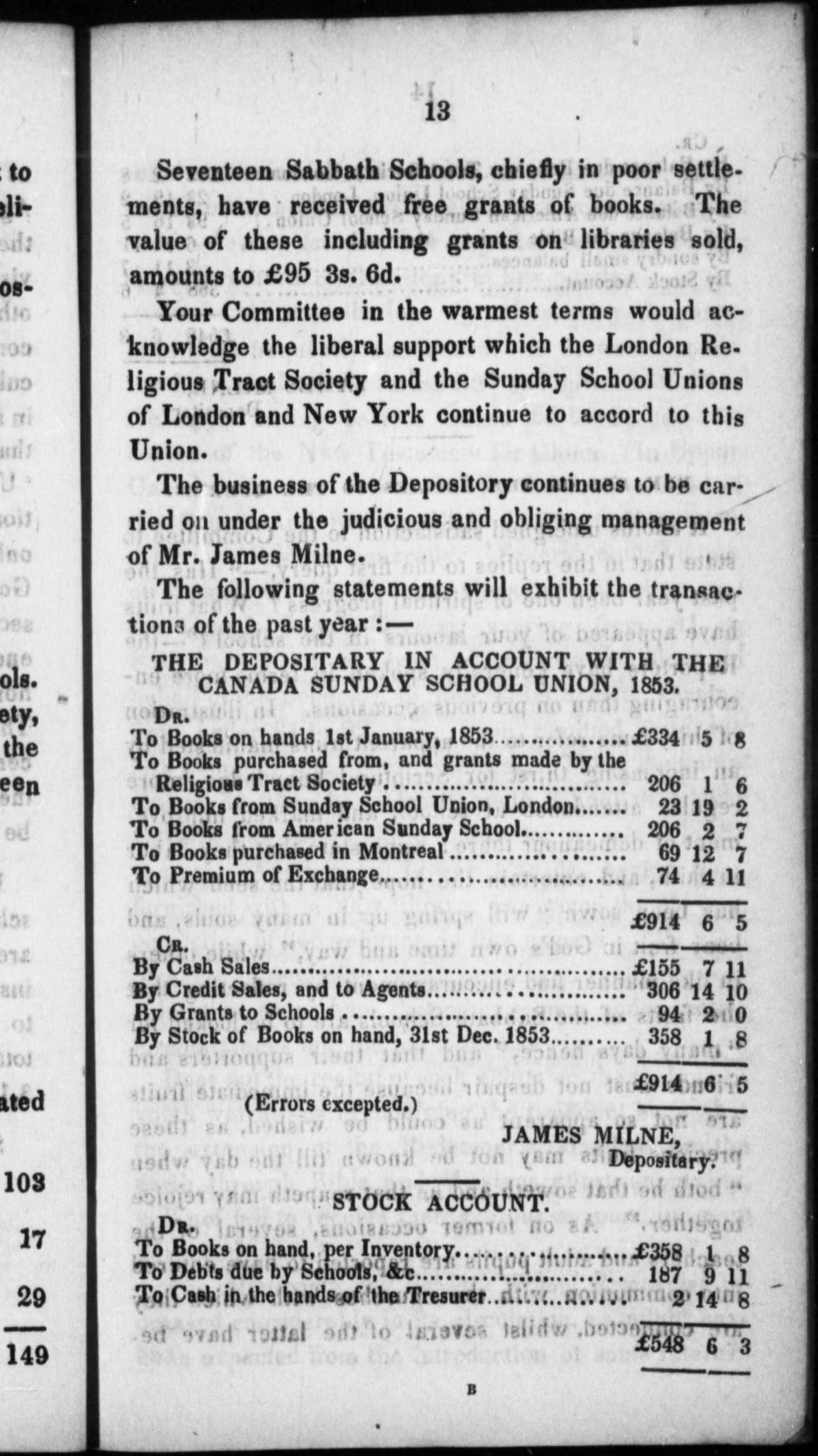 - Seventeenth annual report of the Canada Sunday School Union : Seventeenth (1853)