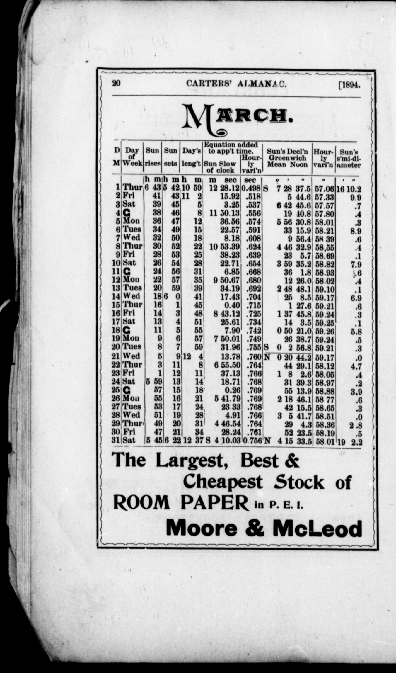 Carters' Prince Edward Island almanac and miscellaneous directory : Carters' Prince Edward Island Almana[c] and miscellaneous directory : 1894
