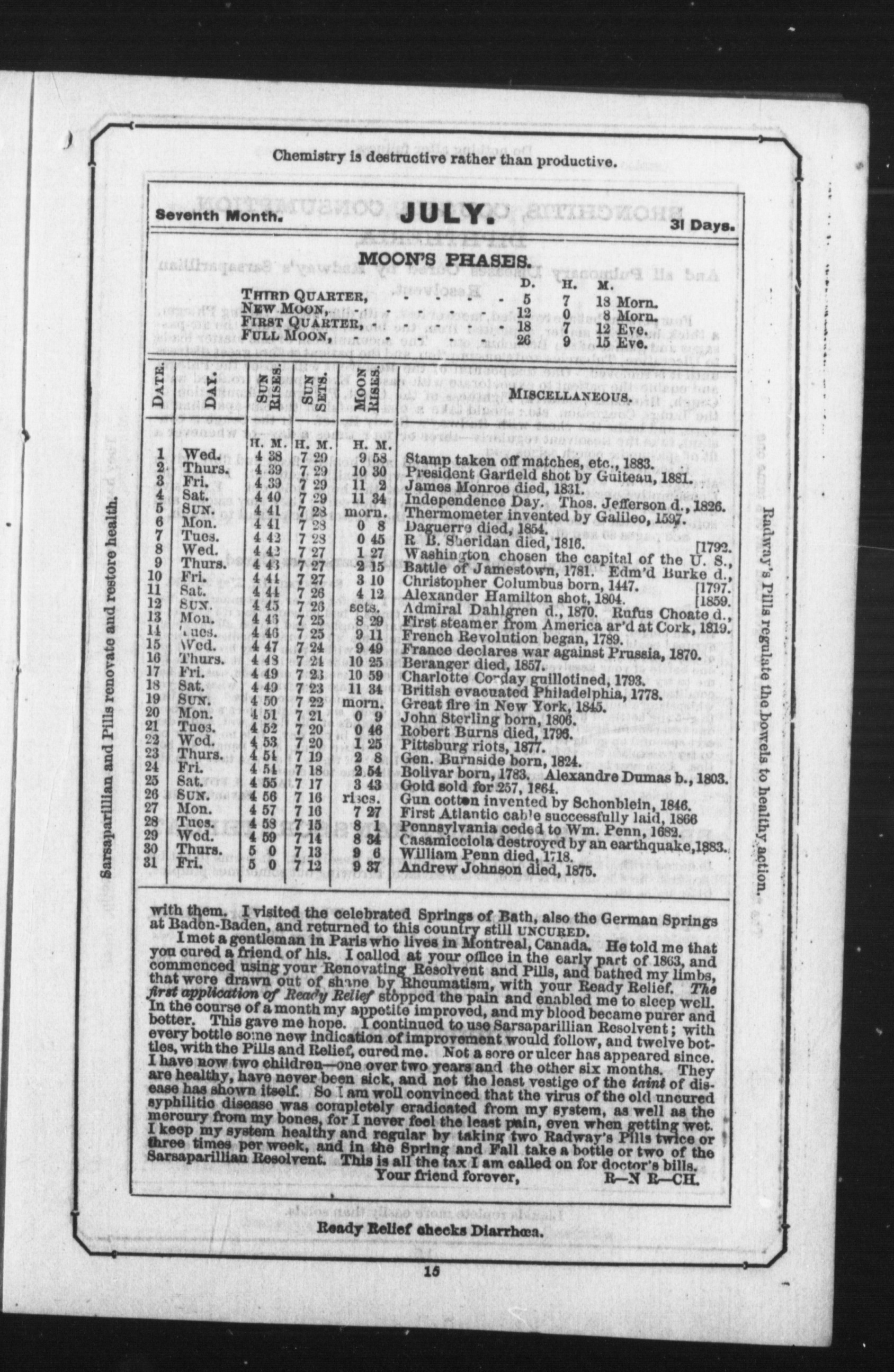 Dr. Radway's almanac for ... : Radway's almanac and guide to health : 1885