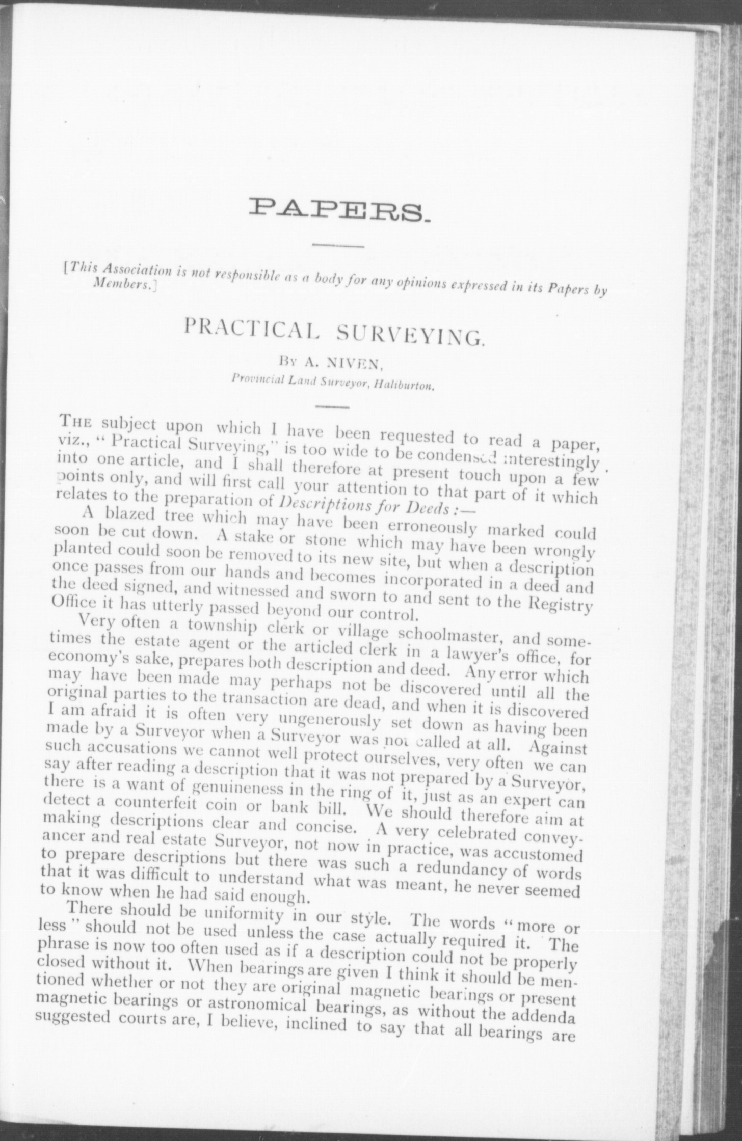 - Proceedings of the Association of Provincial Land Surveyors of Ontario : Third (1888)