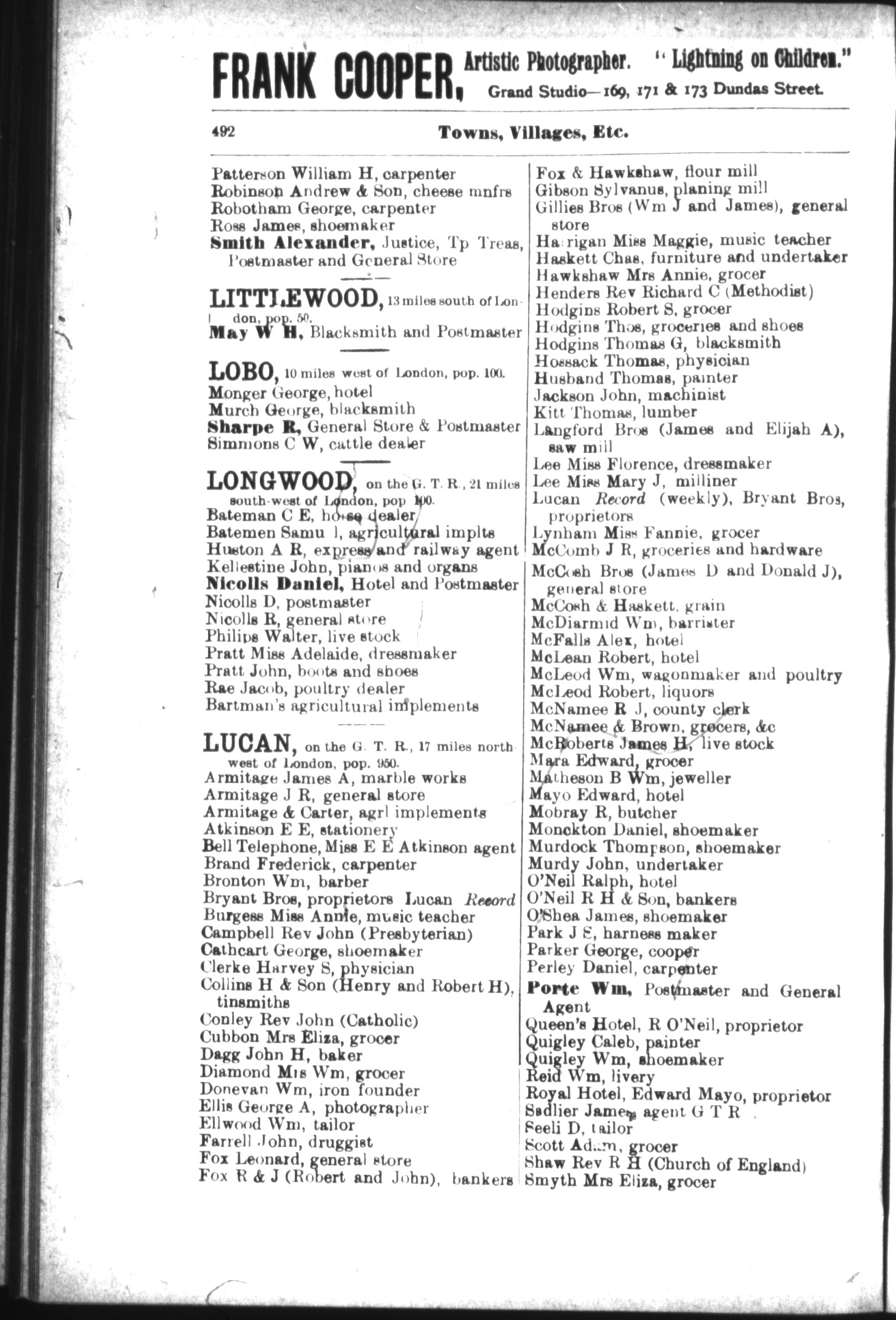 London, Ont. : Published by Might's Directory Co., 1892; 508 images avec recherche en texte intégral