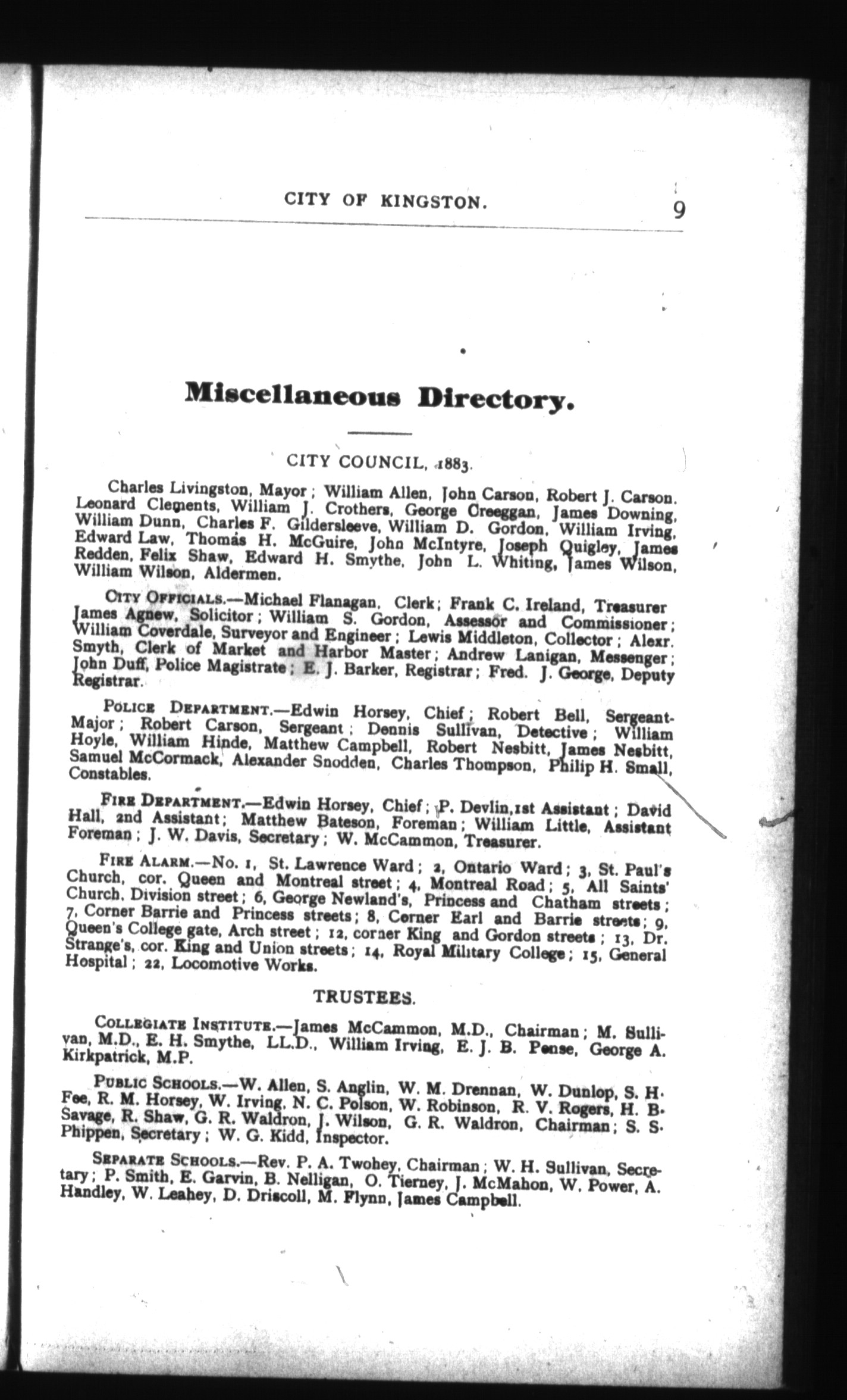 - City of Kingston alphabetical, general, miscellaneous and classified business directory for the year 1883-84 : 1st Edition (1883-84)