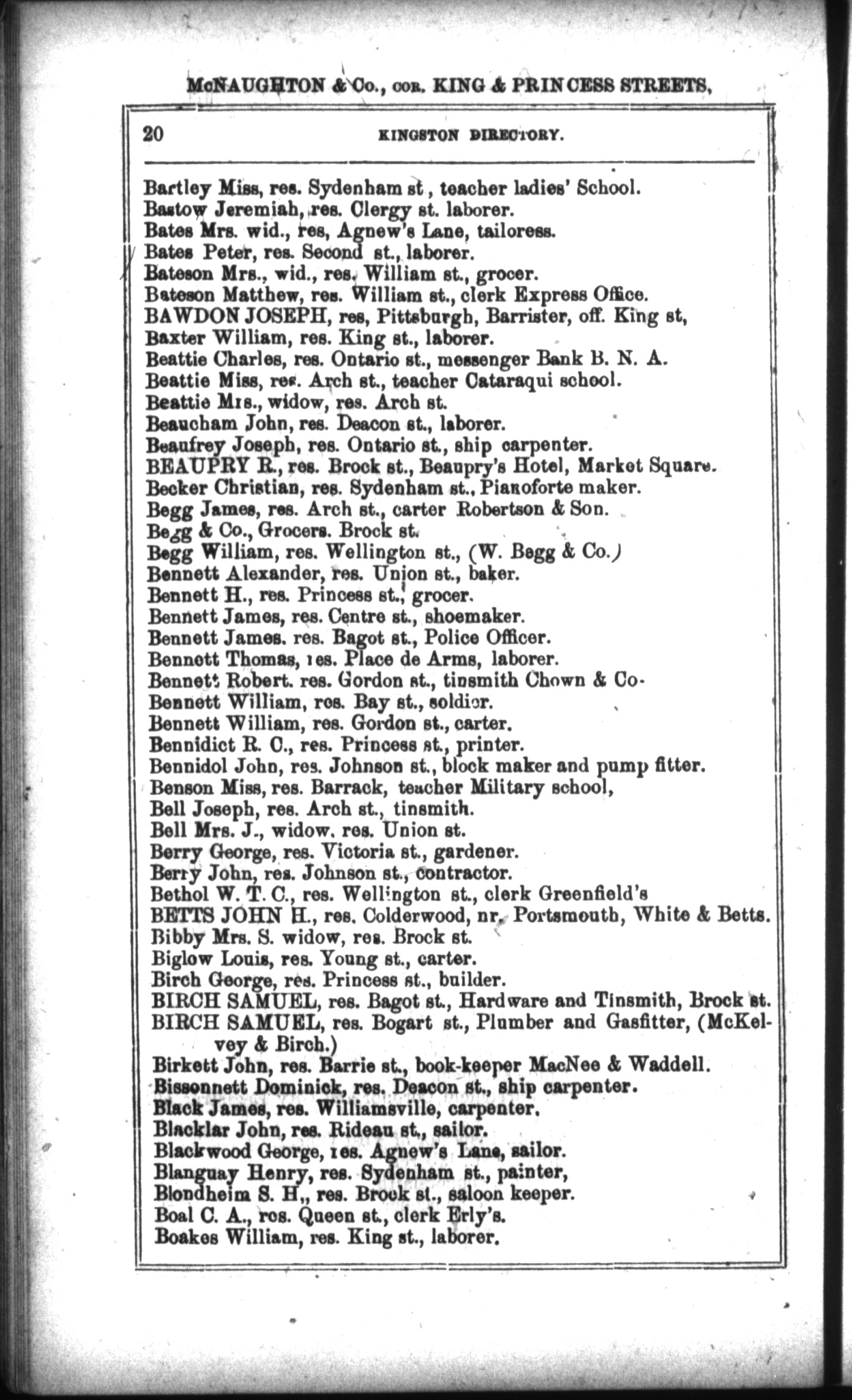- Directory of the city of Kingston with villages of Barriefield, Portsmouth & Cataraqui, and towns of Ganonoque & Napanee for 1873/74 : 1873-4