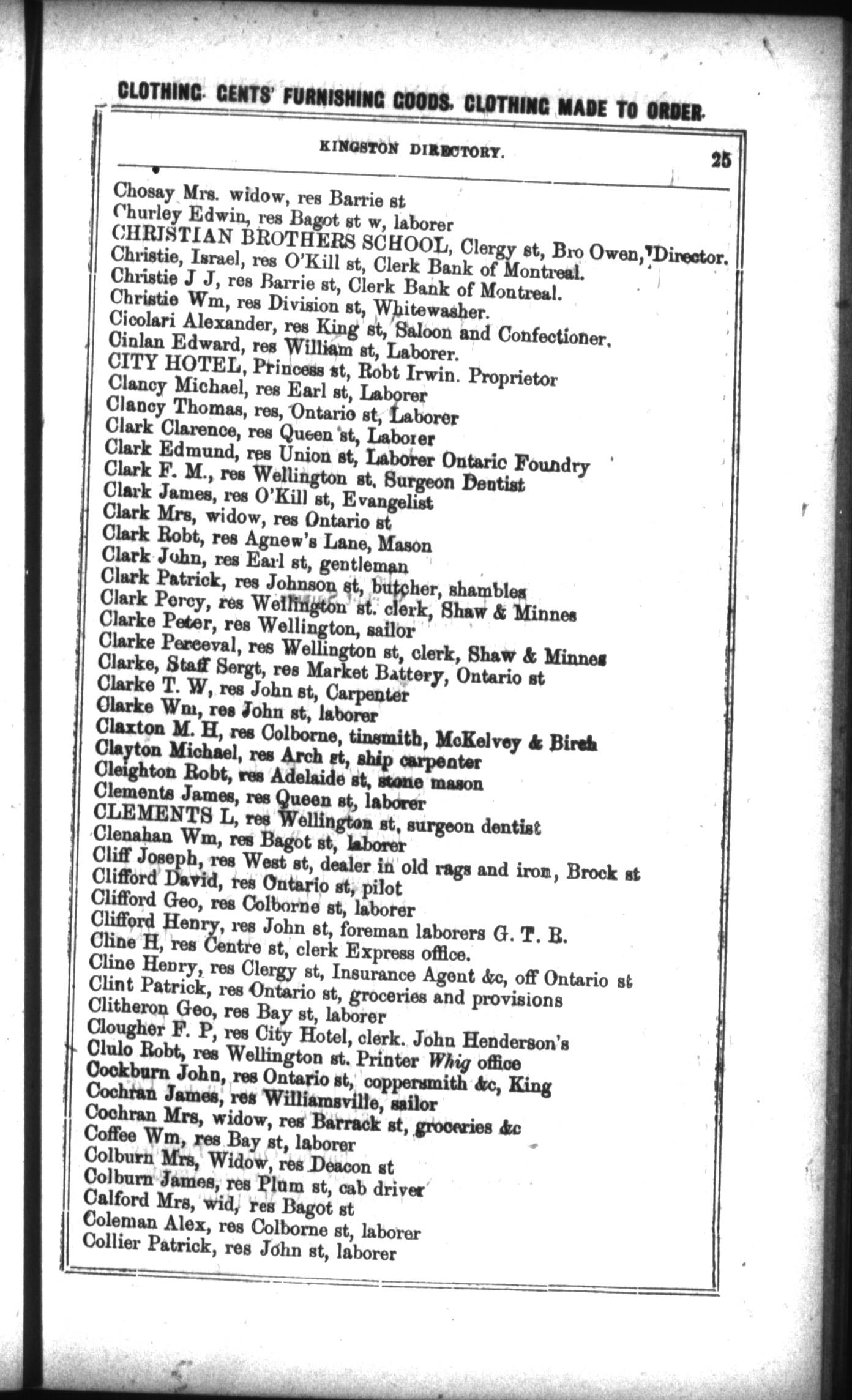 Directory of the city of Kingston with villages of Barriefield, Portsmouth & Cataraqui, and towns of Ganonoque & Napanee for 1873/74 : 1873-4