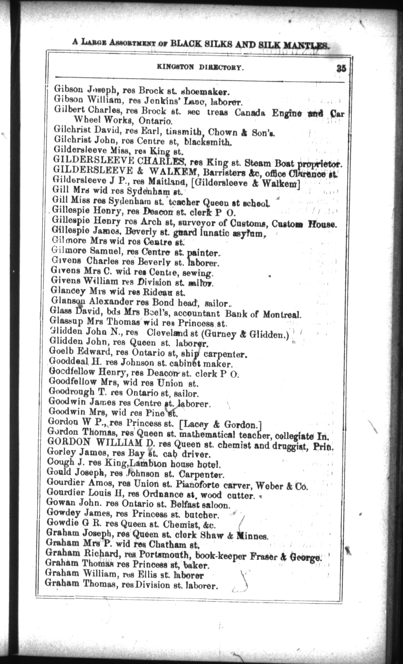 - Directory of the city of Kingston with villages of Barriefield, Portsmouth & Cataraqui, and towns of Ganonoque & Napanee for 1873/74 : 1873-4