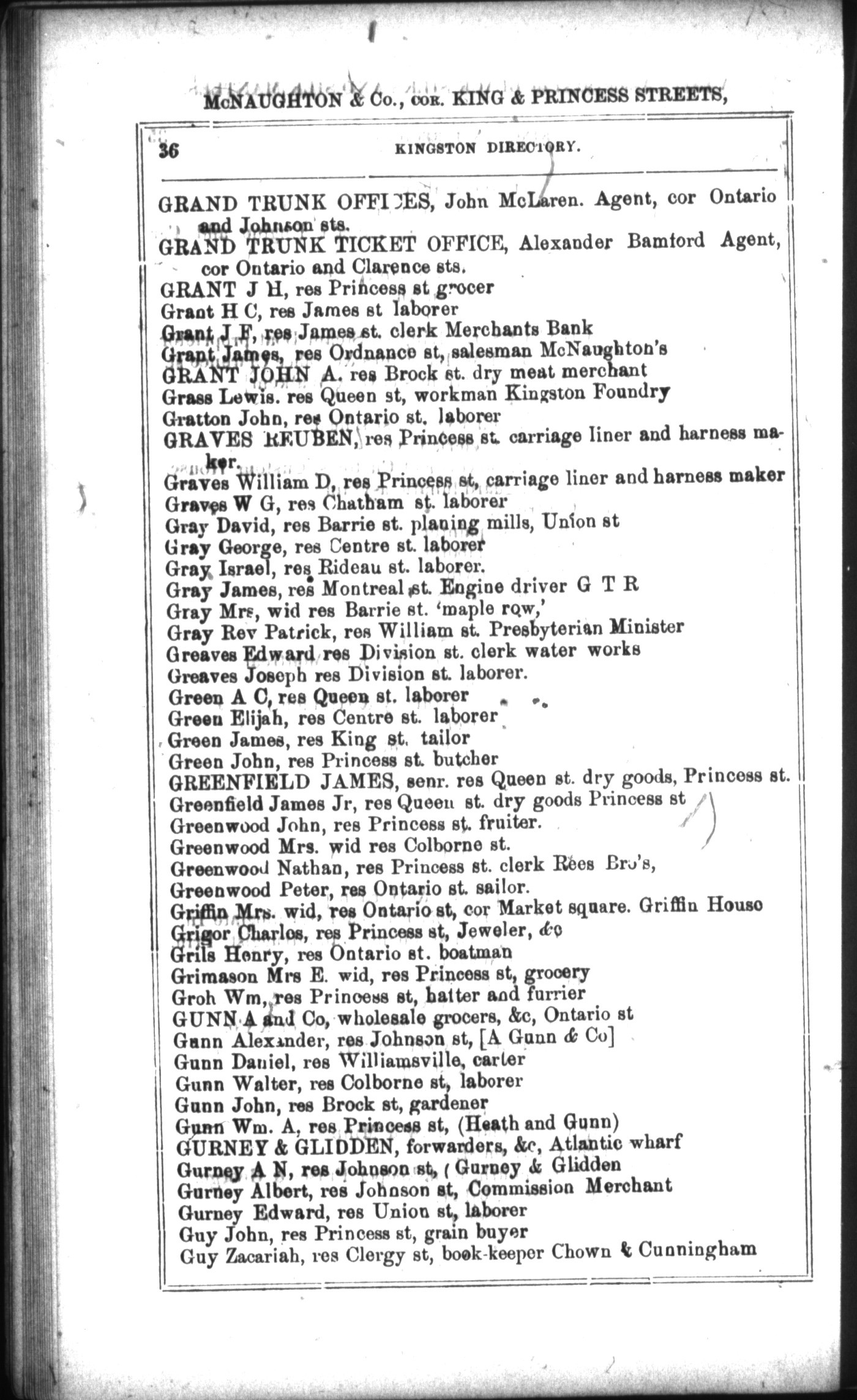 Directory of the city of Kingston with villages of Barriefield, Portsmouth & Cataraqui, and towns of Ganonoque & Napanee for 1873/74 : 1873-4