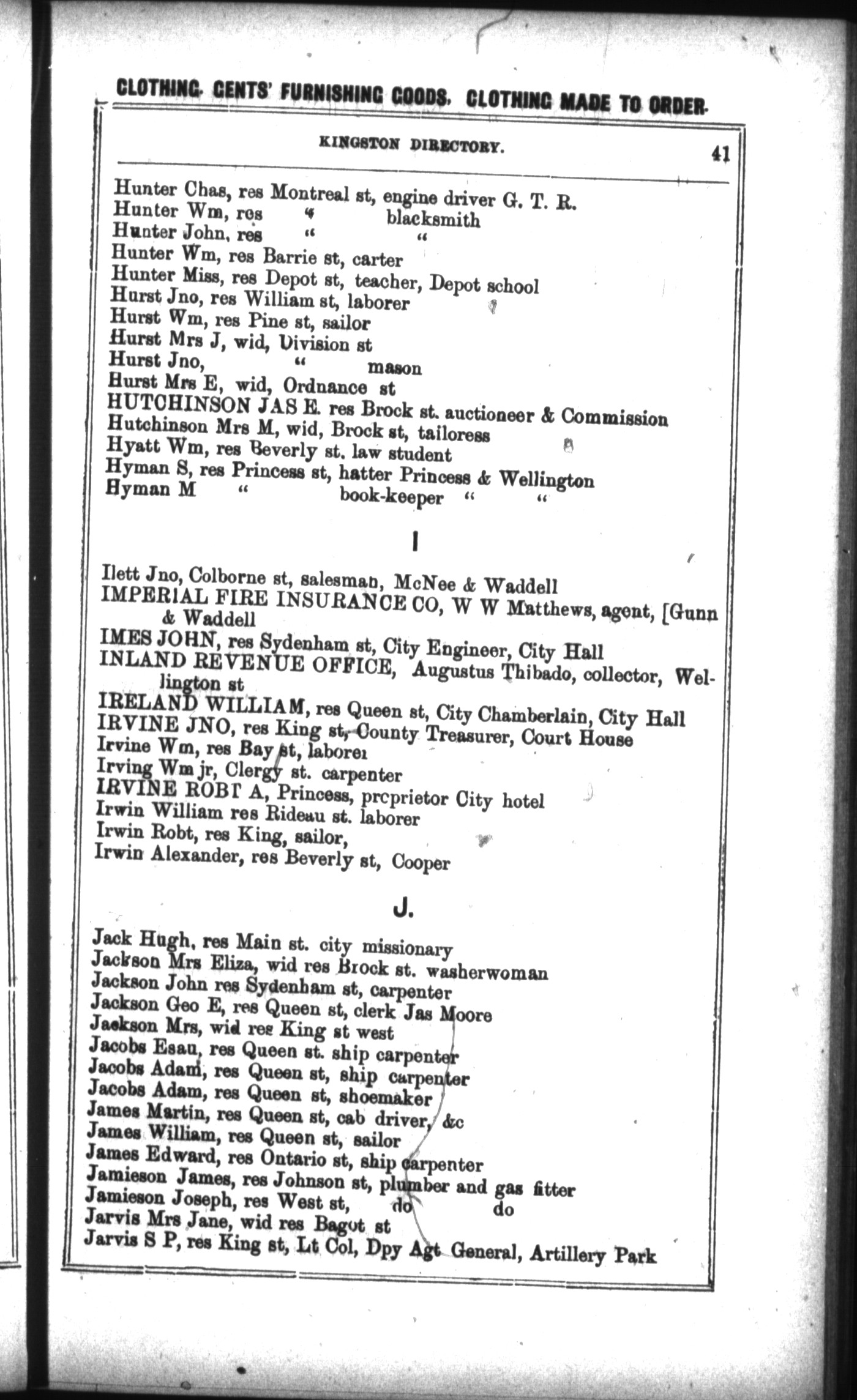 Directory of the city of Kingston with villages of Barriefield, Portsmouth & Cataraqui, and towns of Gananoque & Napanee for ... / compiled by Richardson & Punchard : Directory of the city of Kingston with villages of Barriefield, Portsmouth & Cataraqui, and towns of Ganonoque & Napanee for 1873/74 : 1873-4