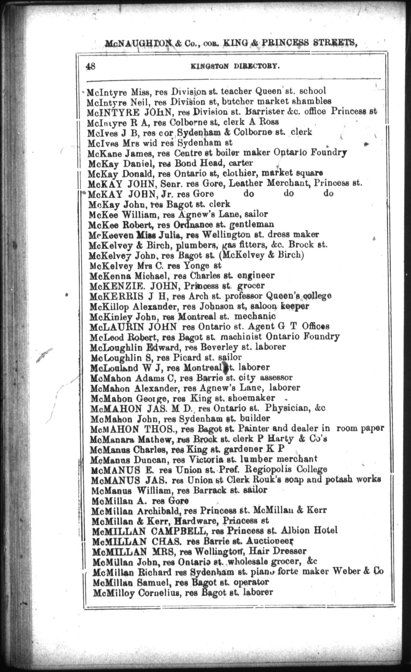 Directory of the city of Kingston with villages of Barriefield, Portsmouth & Cataraqui, and towns of Gananoque & Napanee for ... / compiled by Richardson & Punchard : Directory of the city of Kingston with villages of Barriefield, Portsmouth & Cataraqui, and towns of Ganonoque & Napanee for 1873/74 : 1873-4