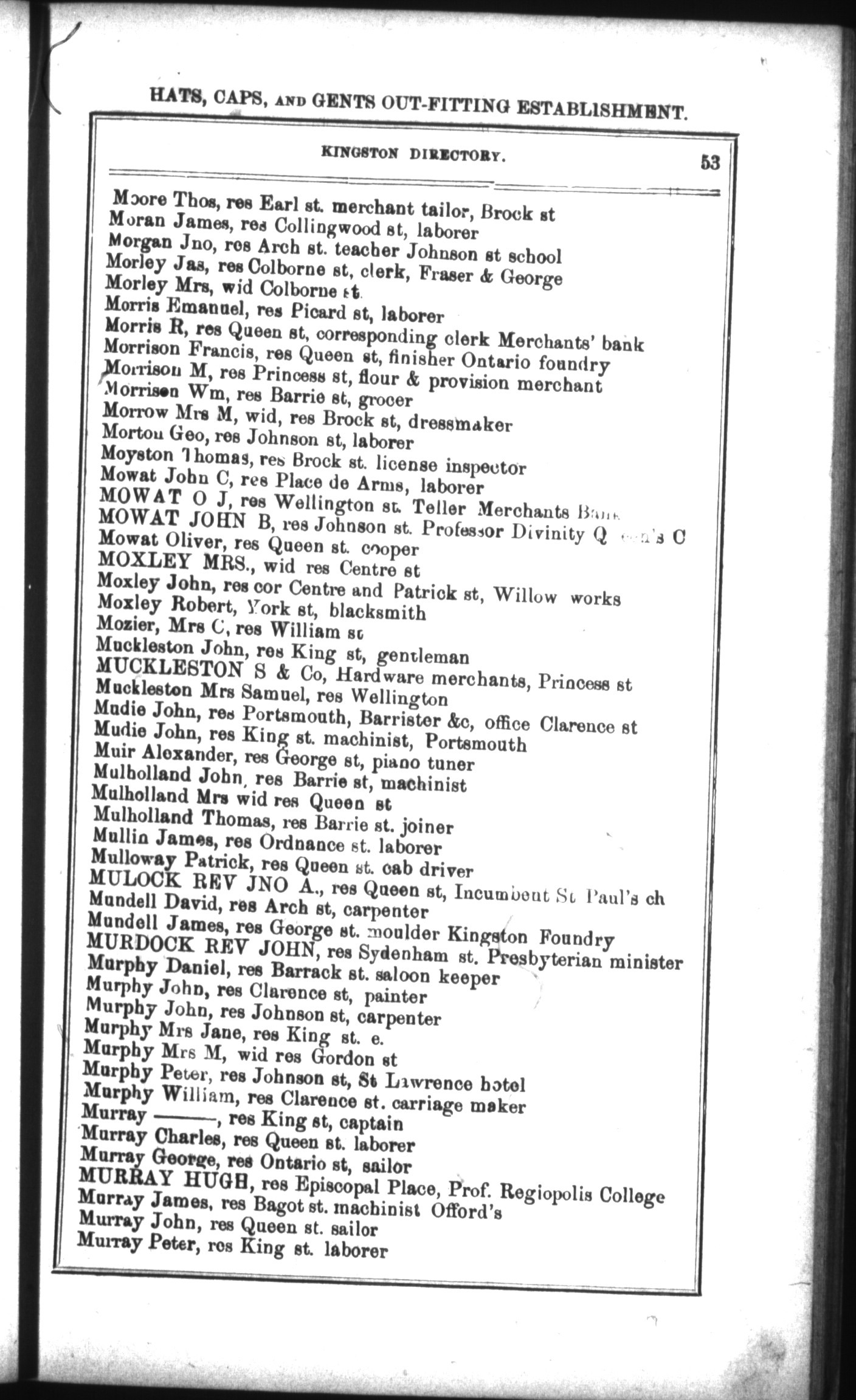 Directory of the city of Kingston with villages of Barriefield, Portsmouth & Cataraqui, and towns of Ganonoque & Napanee for 1873/74 : 1873-4