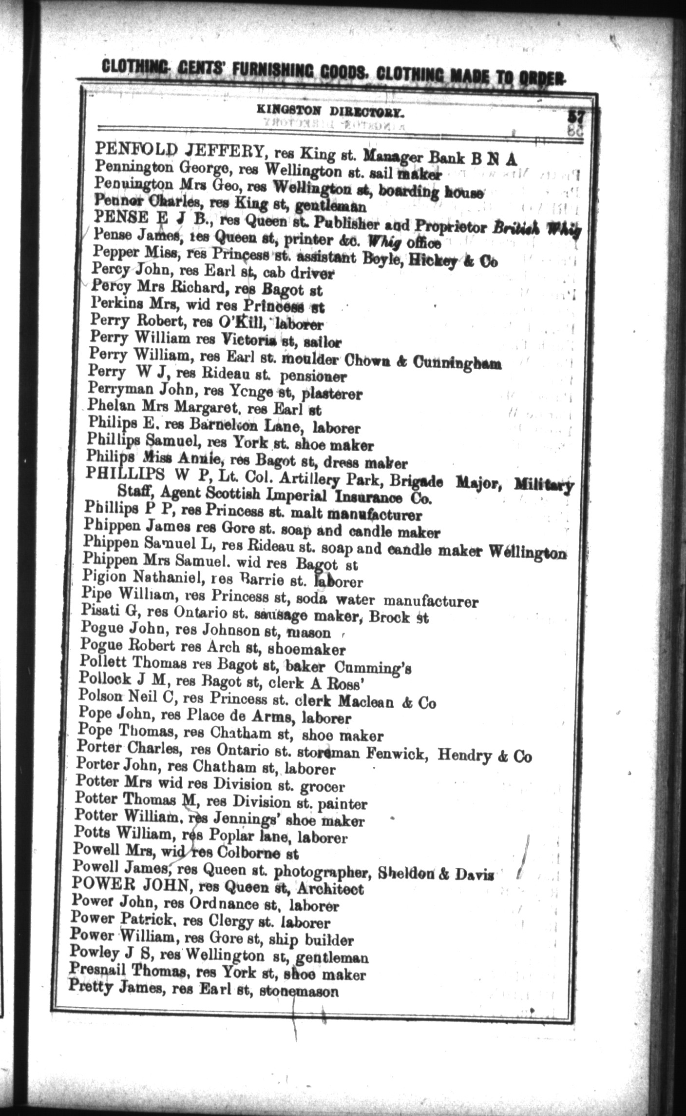 - Directory of the city of Kingston with villages of Barriefield, Portsmouth & Cataraqui, and towns of Ganonoque & Napanee for 1873/74 : 1873-4