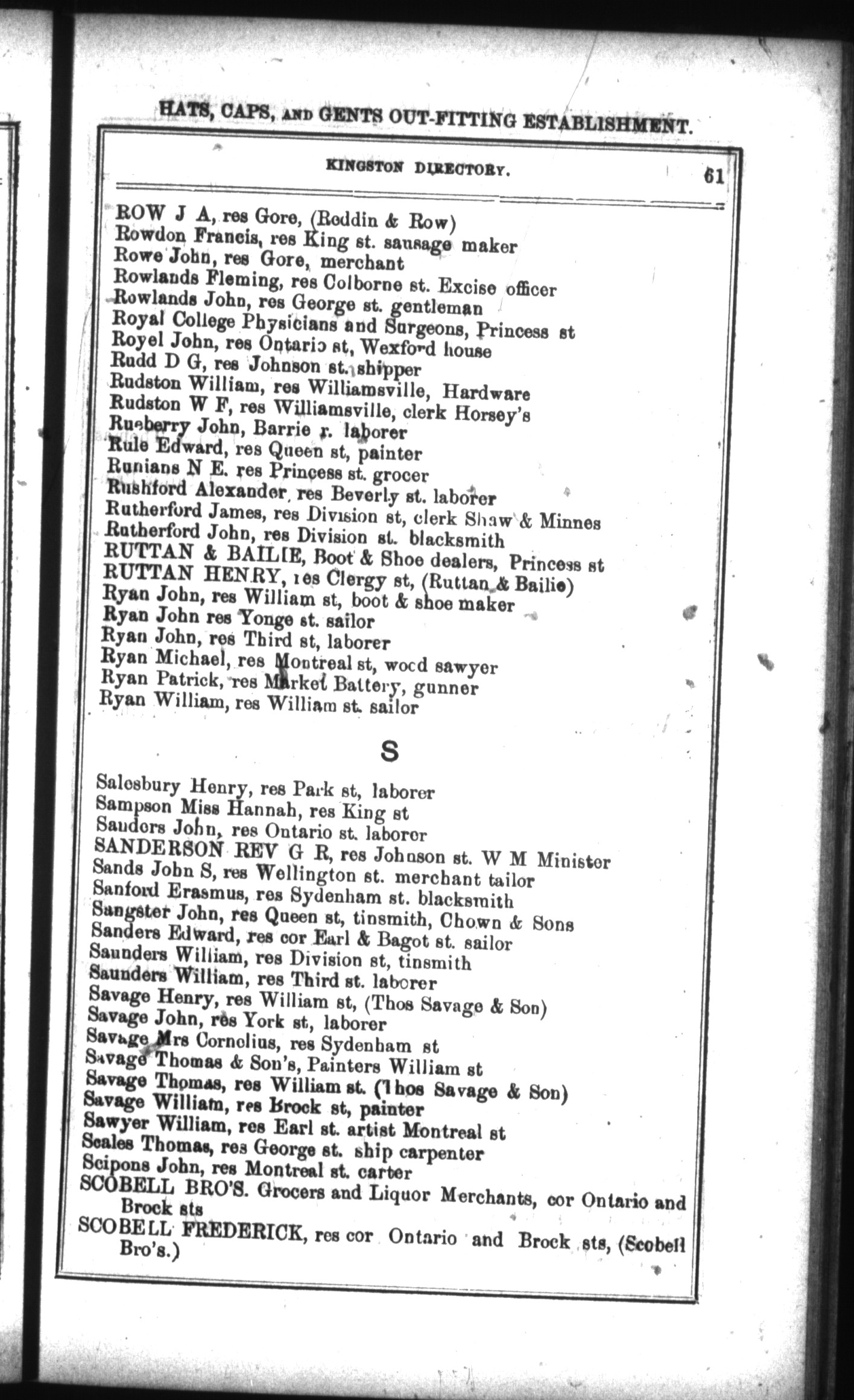 Directory of the city of Kingston with villages of Barriefield, Portsmouth & Cataraqui, and towns of Ganonoque & Napanee for 1873/74 : 1873-4