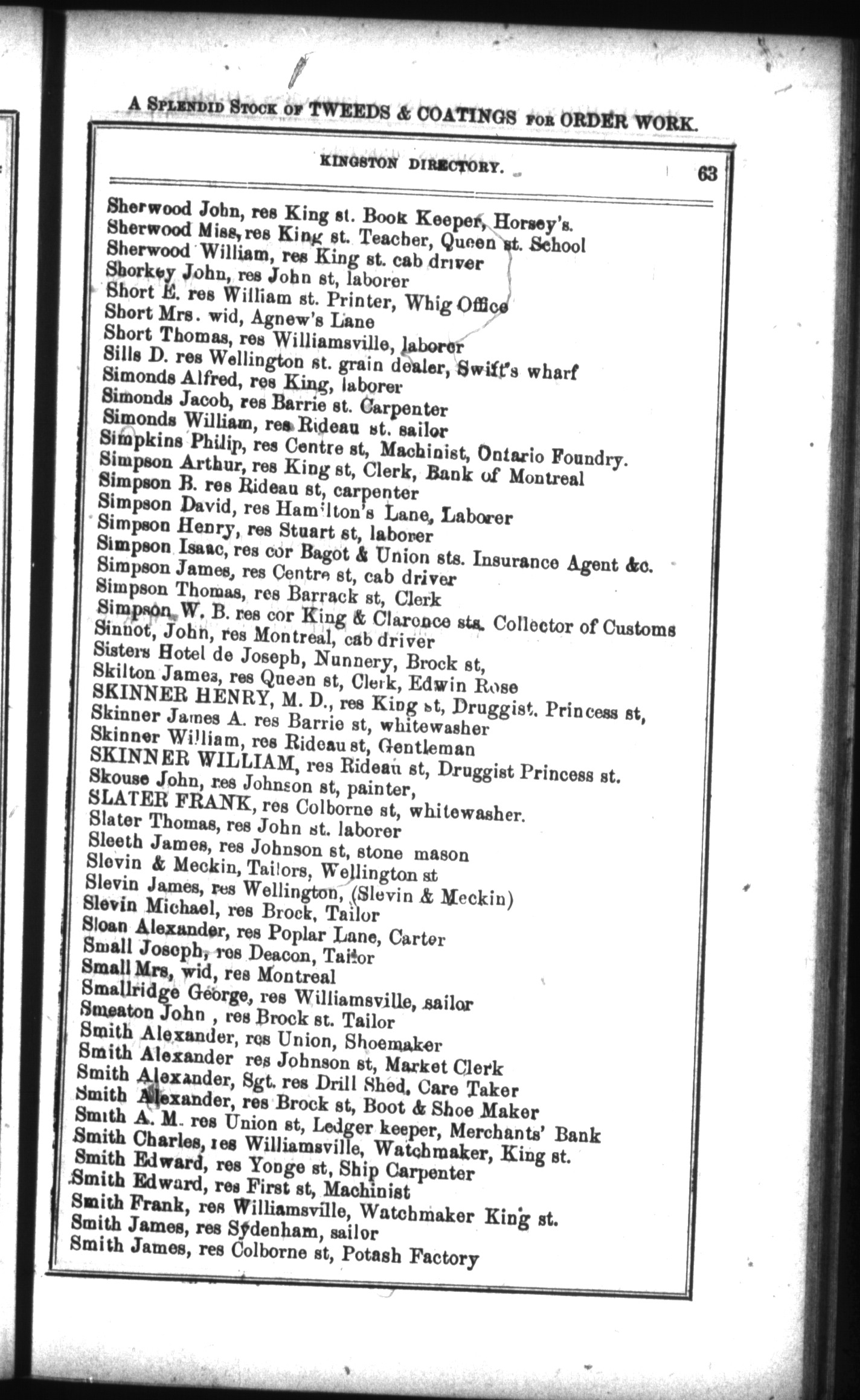Directory of the city of Kingston with villages of Barriefield, Portsmouth & Cataraqui, and towns of Ganonoque & Napanee for 1873/74 : 1873-4