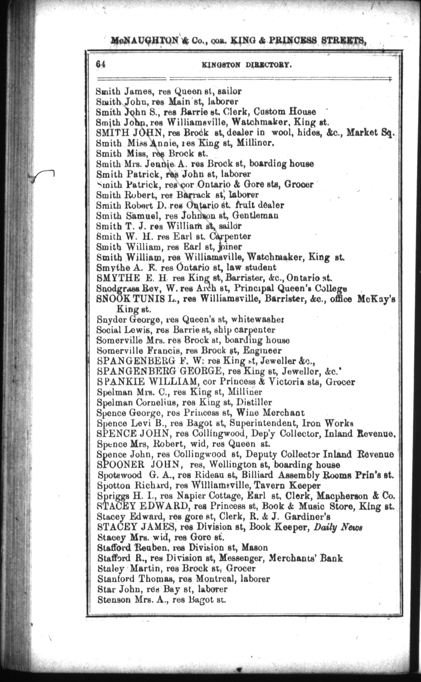 - Directory of the city of Kingston with villages of Barriefield, Portsmouth & Cataraqui, and towns of Ganonoque & Napanee for 1873/74 : 1873-4