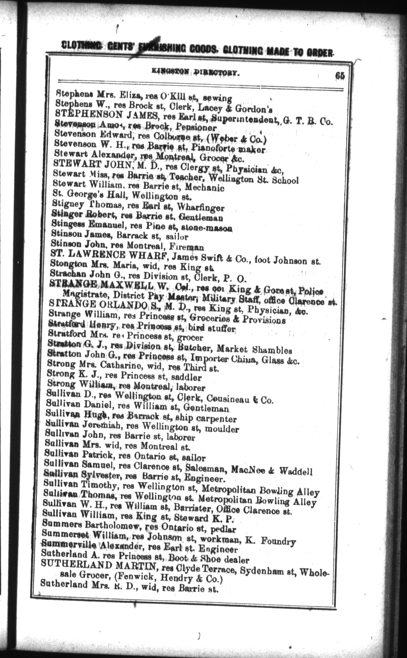 Directory of the city of Kingston with villages of Barriefield, Portsmouth & Cataraqui, and towns of Ganonoque & Napanee for 1873/74 : 1873-4