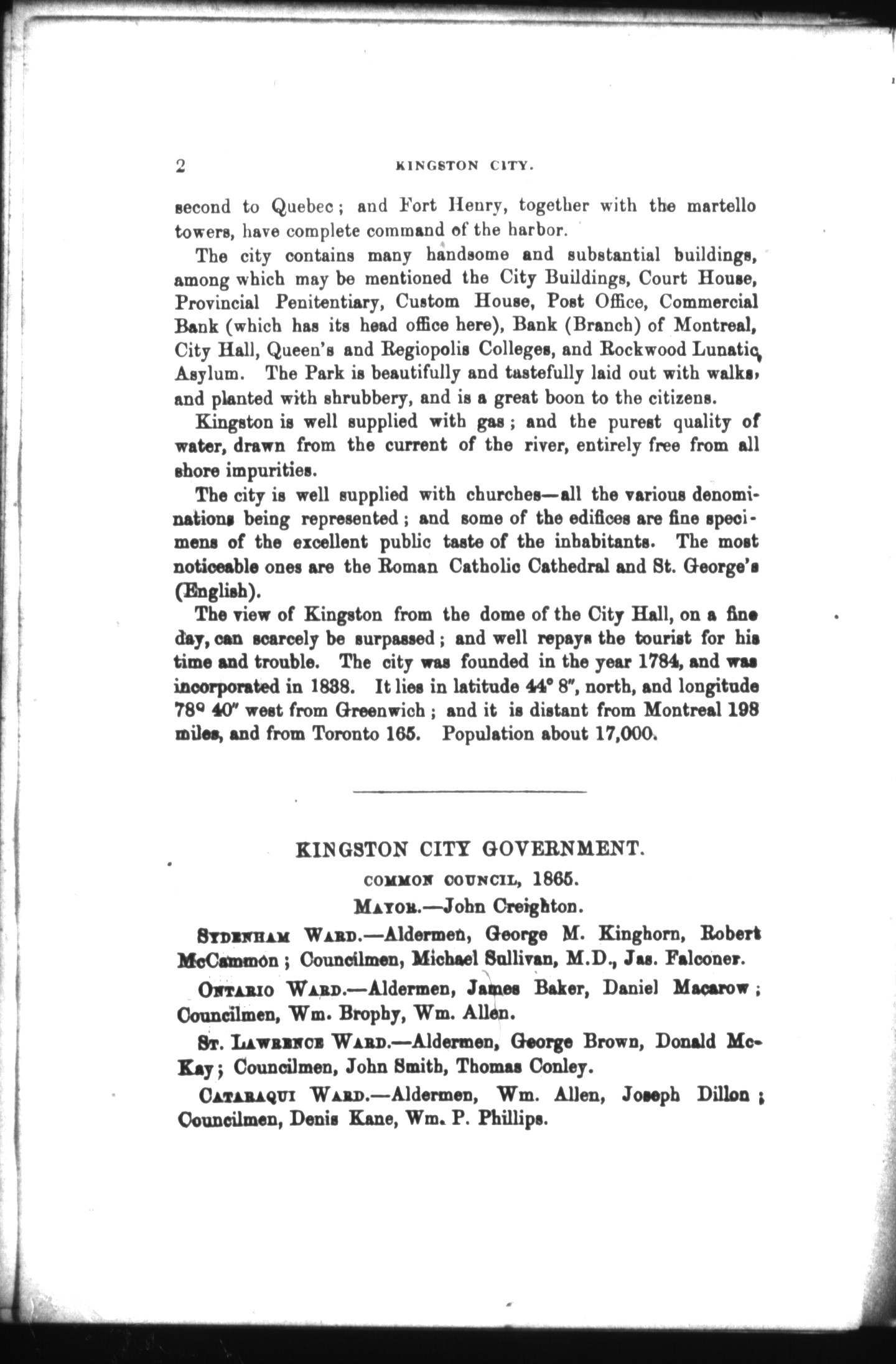 Mitchell & Co.'s general directory for the city of Kingston and gazetteer of the counties of Frontenac, Lennox and Addington for 1865 : 1st Edition (1865)