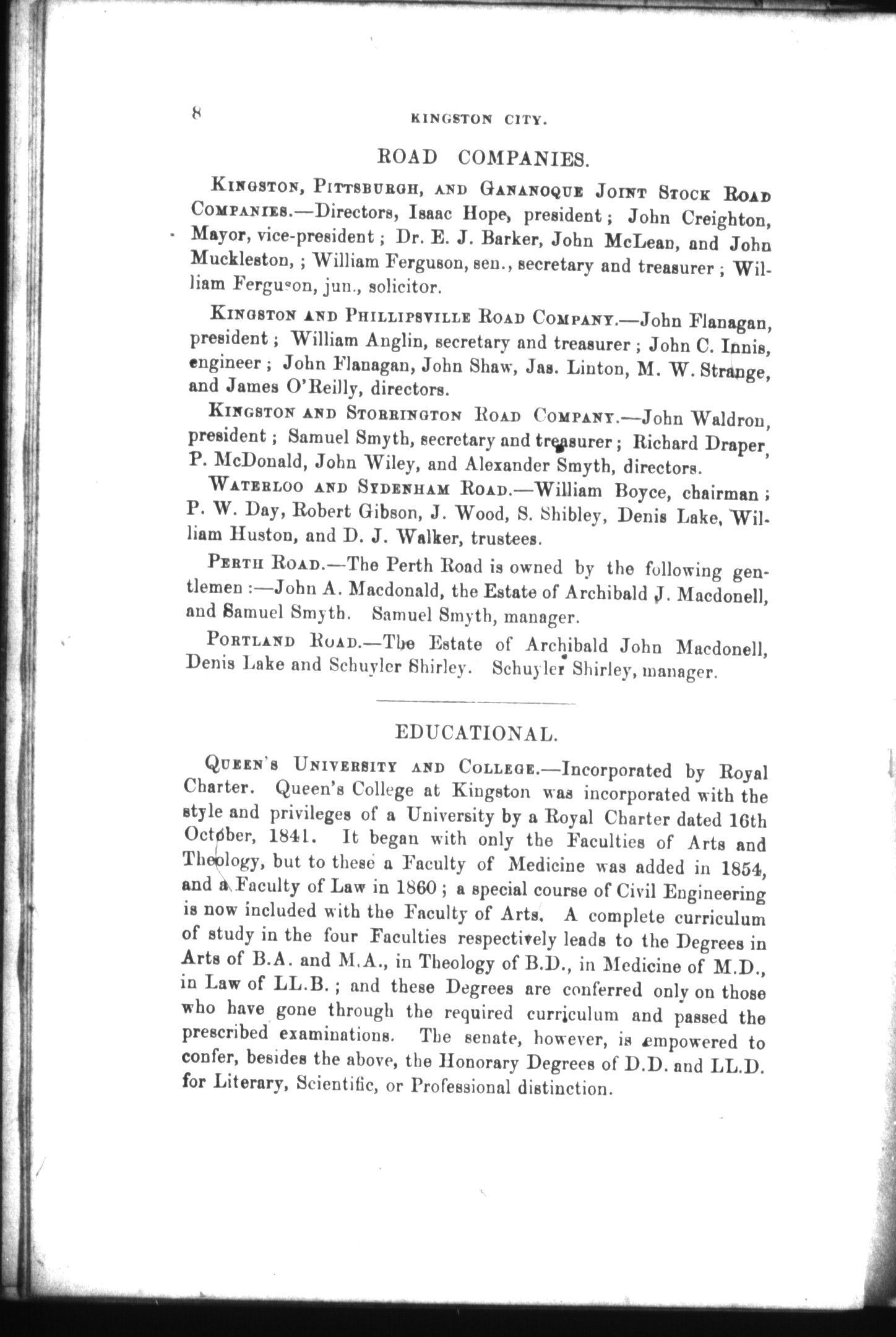 Mitchell & Co.'s general directory for the city of Kingston and gazetteer of the counties of Frontenac, Lennox and Addington for 1865 : 1st Edition (1865)
