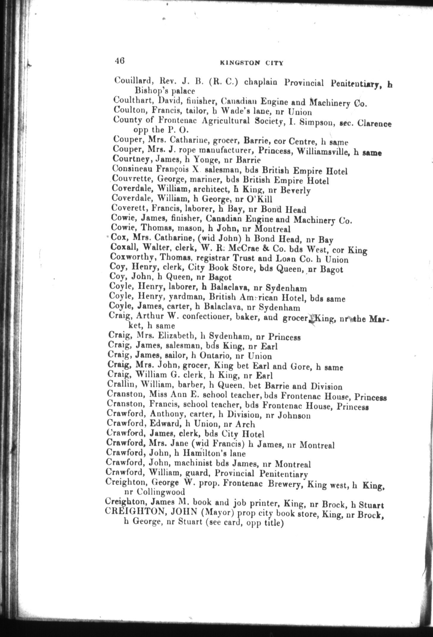 Mitchell & Co.'s general directory for the city of Kingston and gazetteer of the counties of Frontenac, Lennox and Addington for 1865 : 1st Edition (1865)
