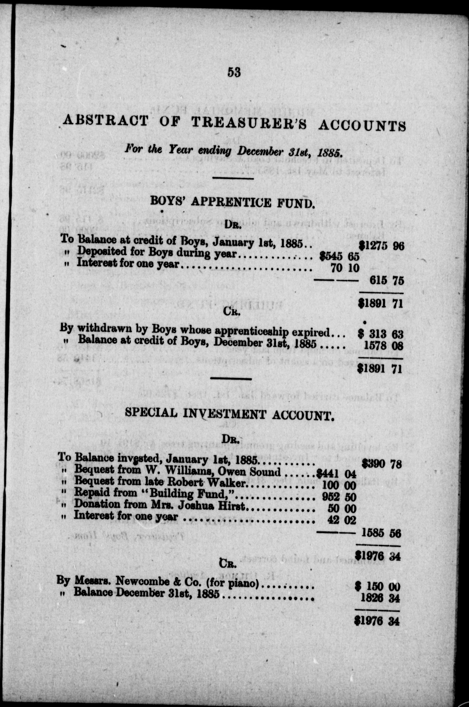 Toronto : Boys' Home for the Training and Maintenance of Destitute Boys not Convicted of Crime. Committee of Management, 1886; 59 images, 57 avec recherche en texte intégral